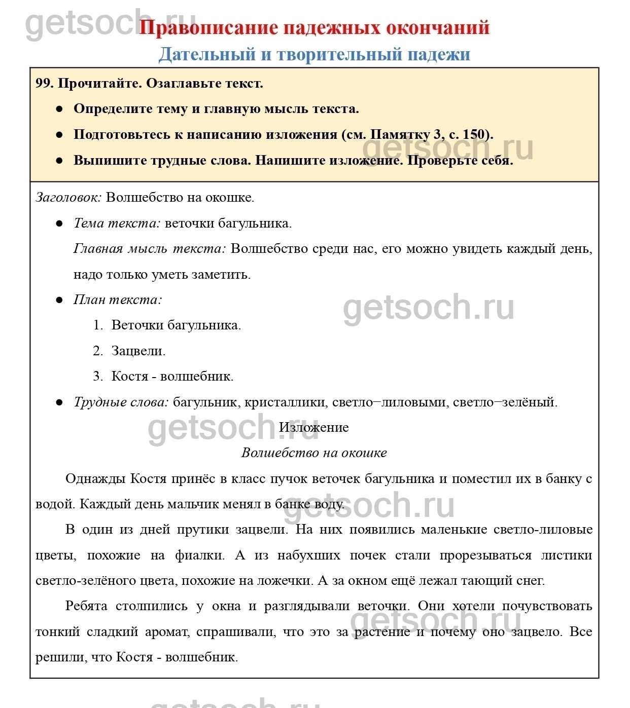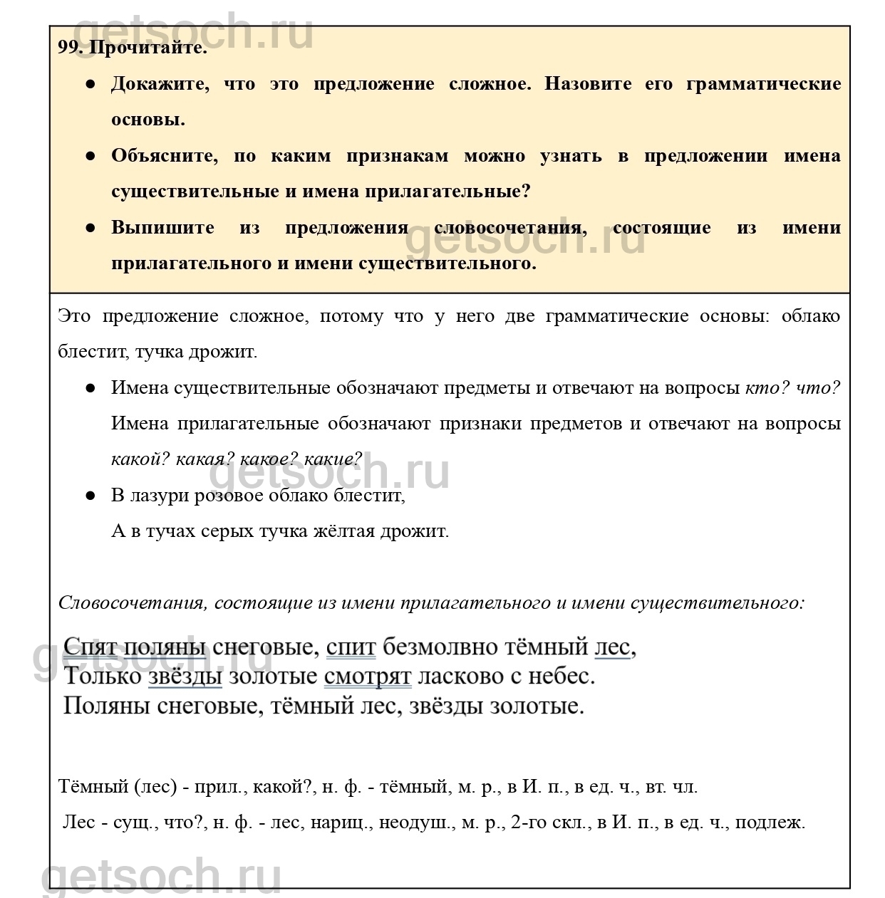 Рассмотрим ответы на Упражнение 99 из учебника по русскому языку для 4 класса Канакиной