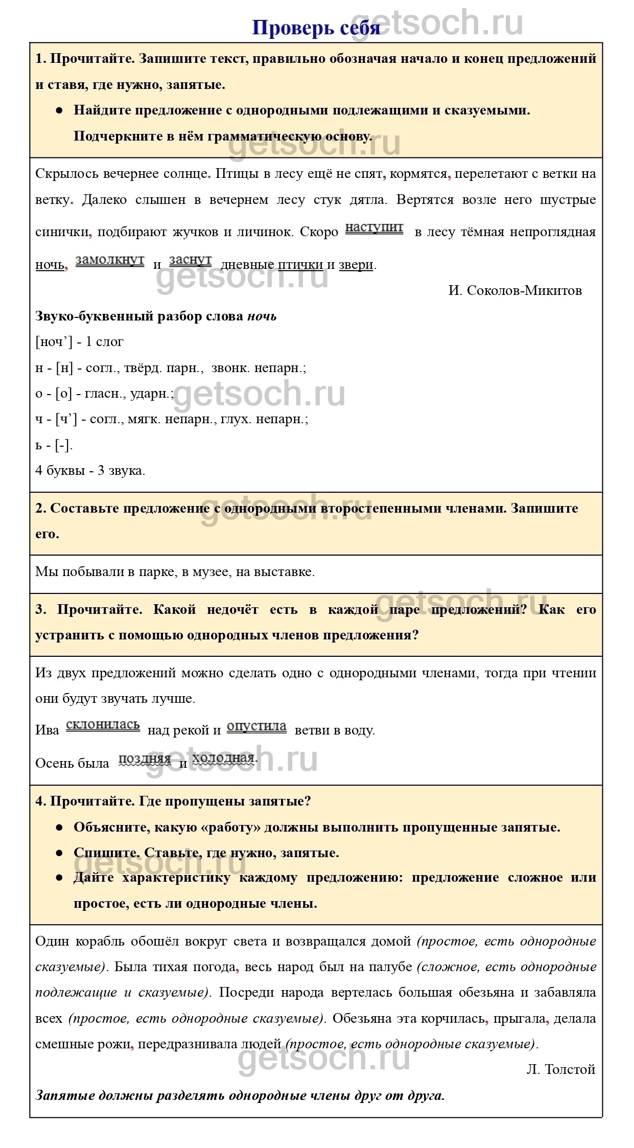 Рассмотрим ответы на Проверь себя Страница 40 из учебника по русскому языку для 4 класса Канакиной