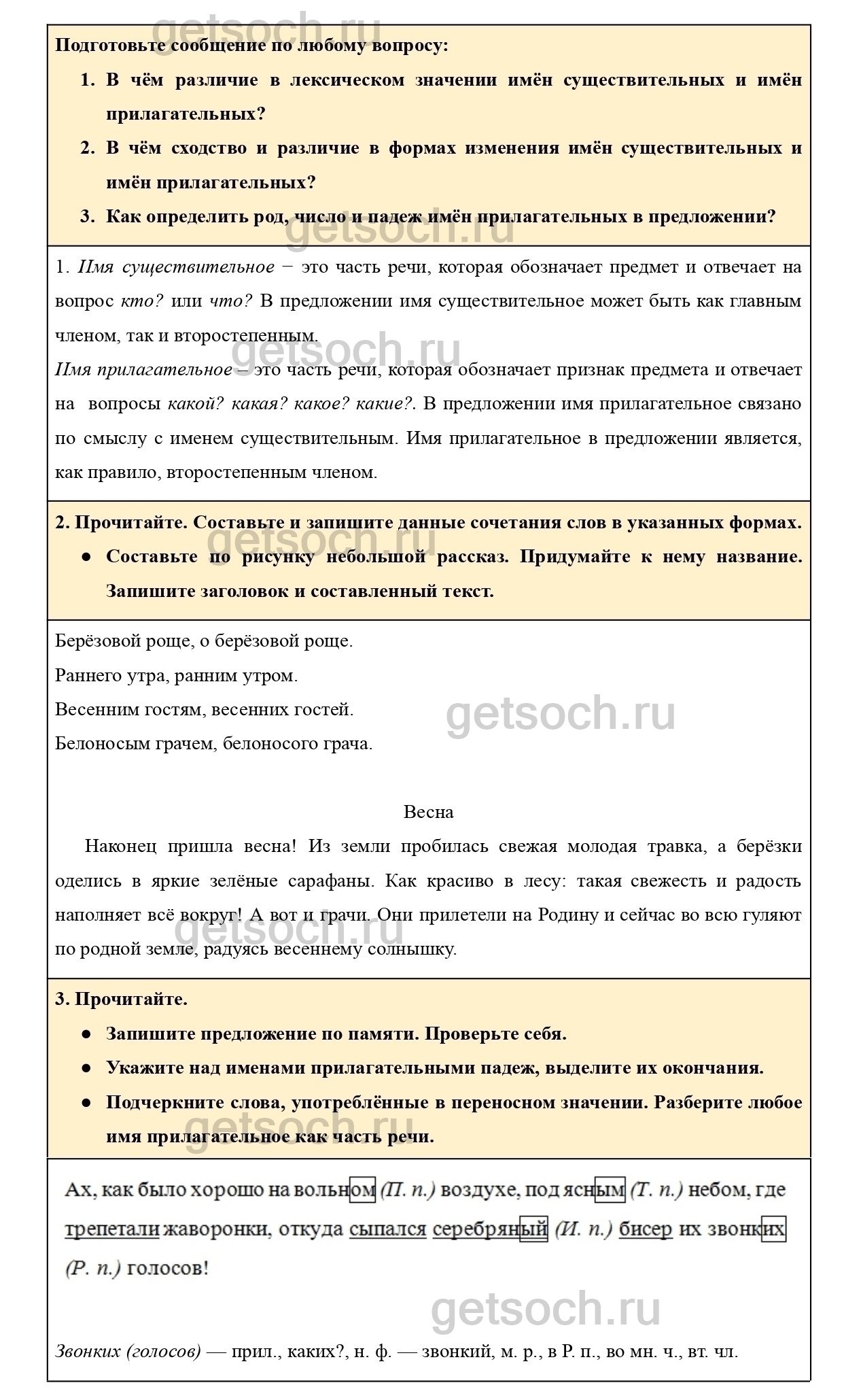 2. В чём сходство и различие в формах изменения имён существительных и имён прилагательных?