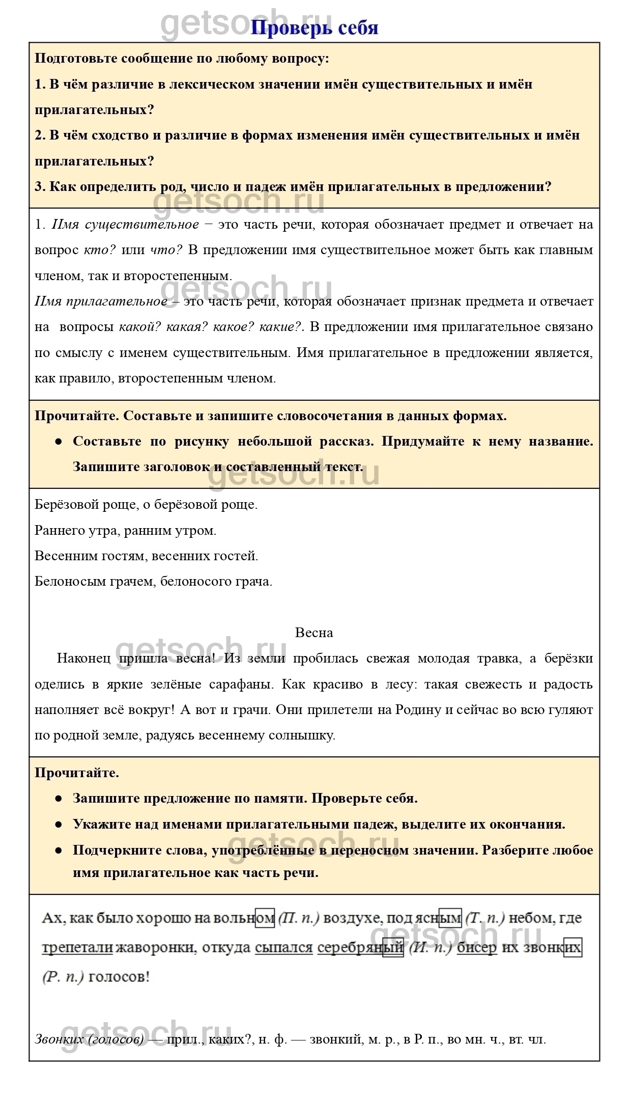 Рассмотрим ответы на Проверь себя Страница 50 из учебника по русскому языку для 4 класса Канакиной