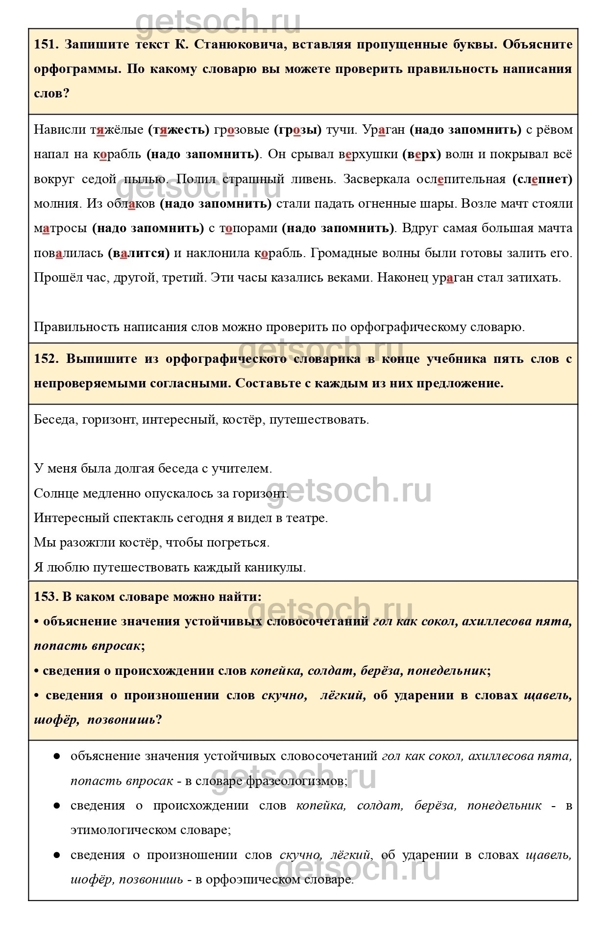 151. Запишите текст К. Станюковича, вставляя пропущенные буквы. Объясните орфограммы. По какому словарю вы можете проверить правильность написания слов?