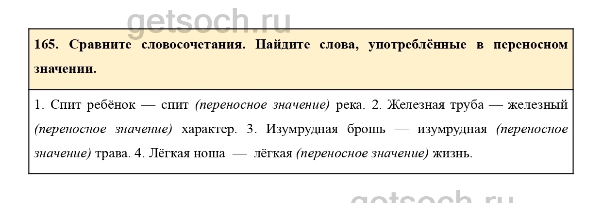 165. Сравните словосочетания. Найдите слова, употреблённые в переносном значении.