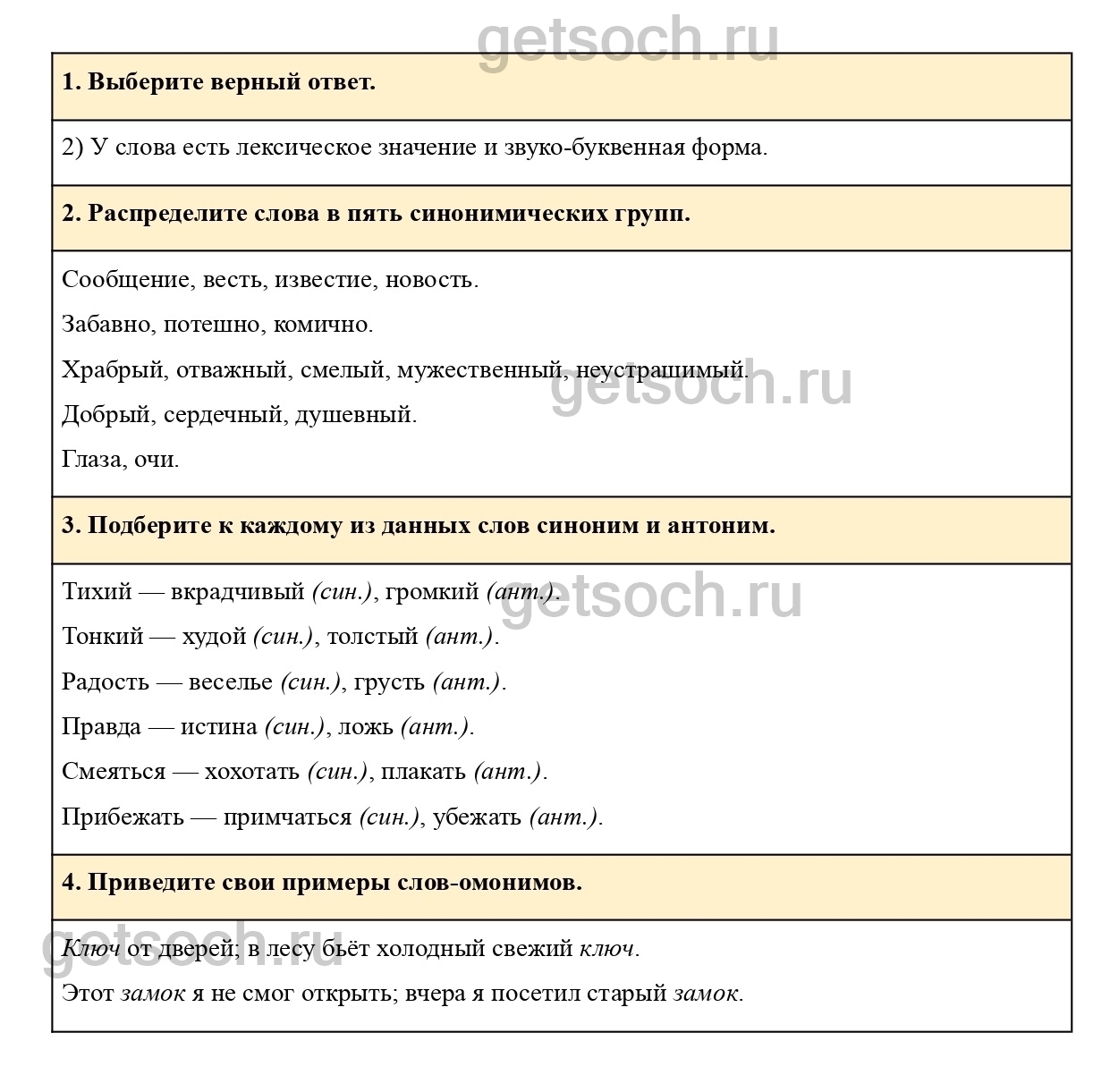 2. Распределите слова в пять синонимических групп.