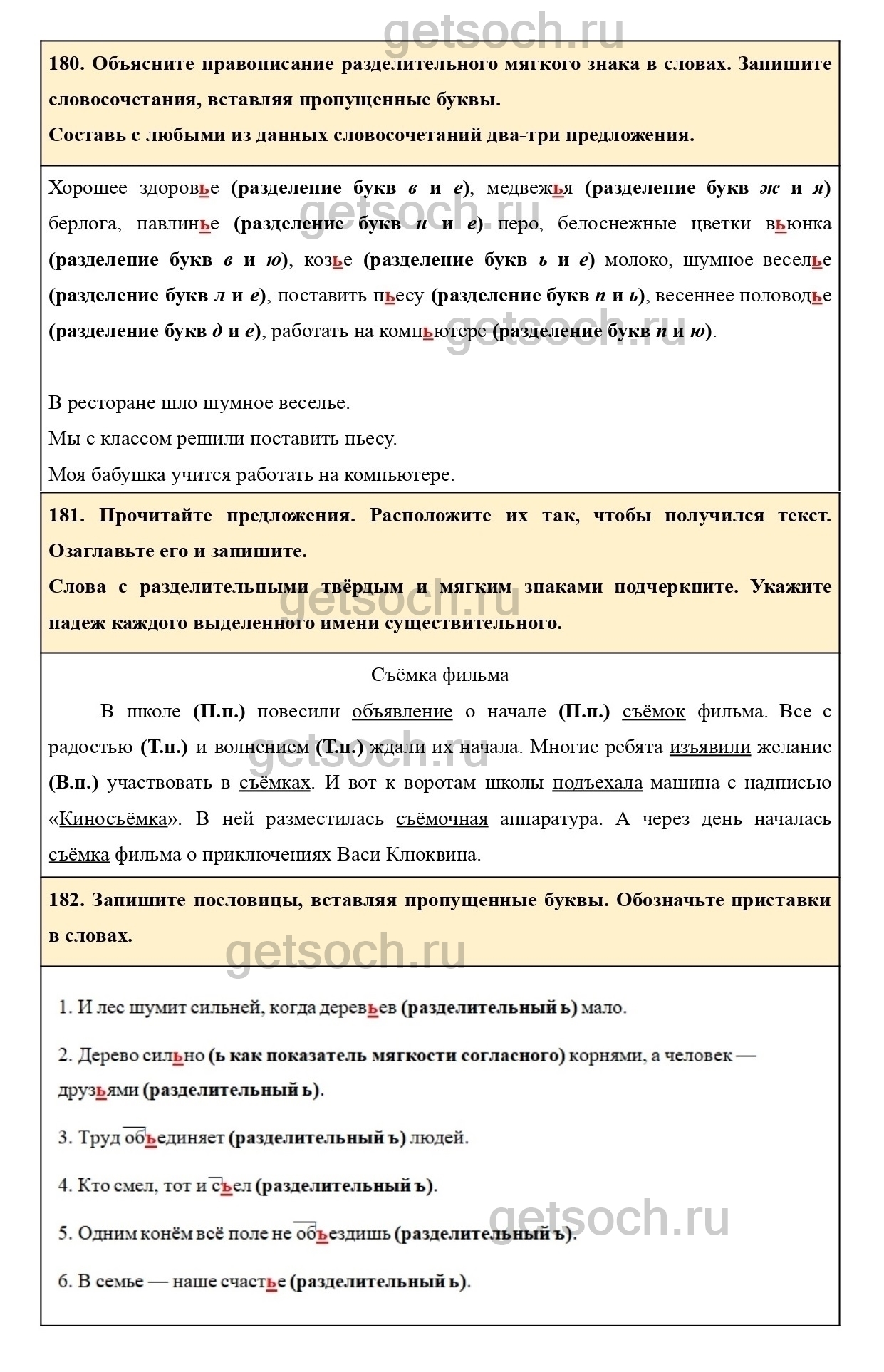 180. Объясните правописание разделительного мягкого знака в словах. Запишите словосочетания, вставляя пропущенные буквы.