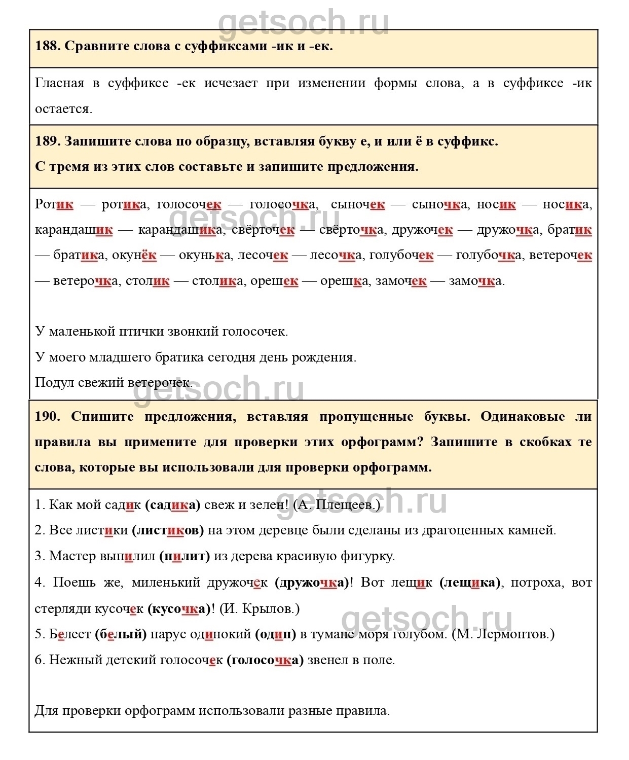 189. Запишите слова по образцу, вставляя букву е, и или ё в суффикс.