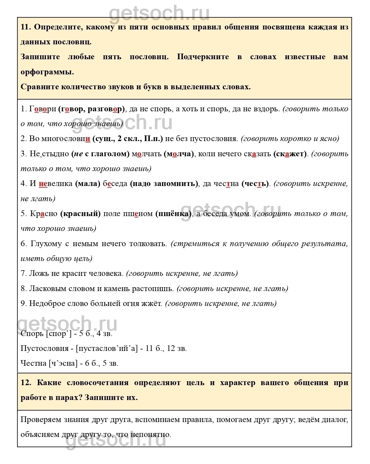 11. Определите, какому из пяти основных правил общения посвящена каждая из данных пословиц.