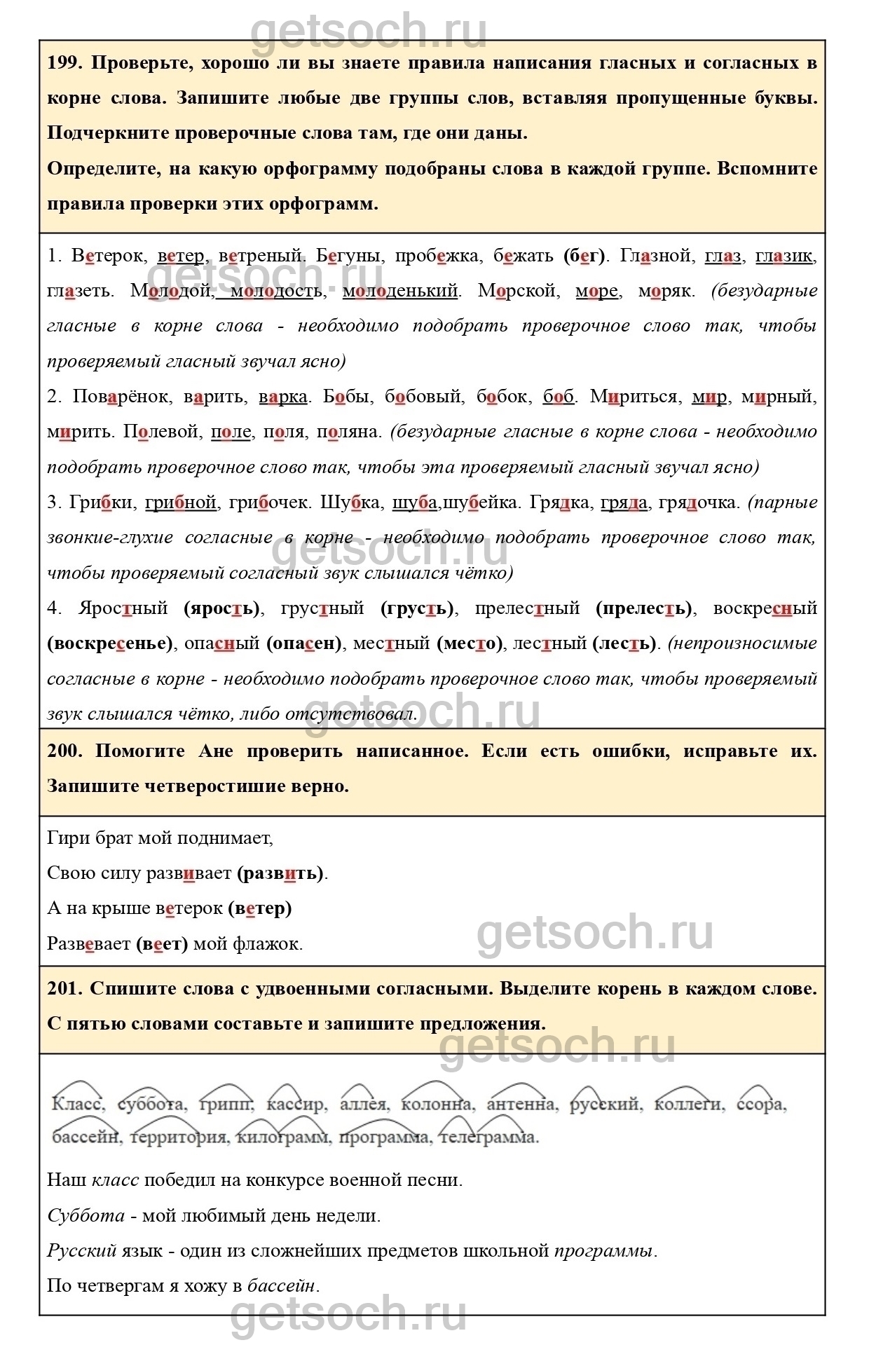 199. Проверьте, хорошо ли вы знаете правила написания гласных и согласных в корне слова. Запишите любые две группы слов, вставляя пропущенные буквы. Подчеркните проверочные слова там, где они даны.