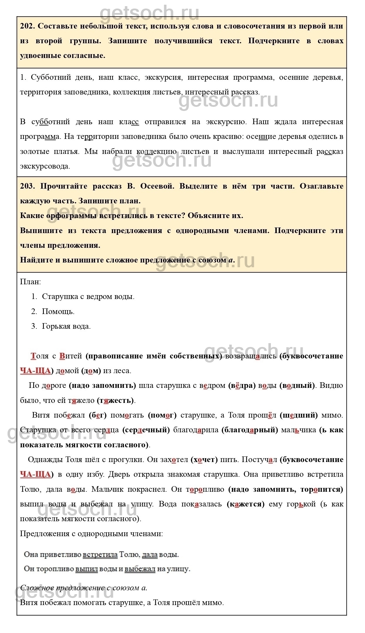 203. Прочитайте рассказ В. Осеевой. Выделите в нём три части. Озаглавьте каждую часть. Запишите план.