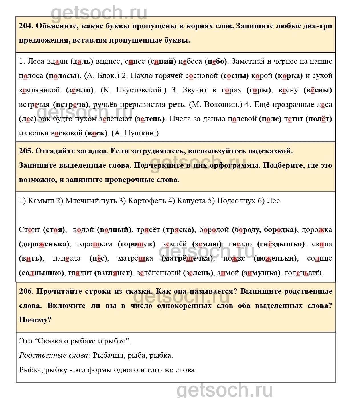 204. Объясните, какие буквы пропущены в корнях слов. Запишите любые два-три предложения, вставляя пропущенные буквы.