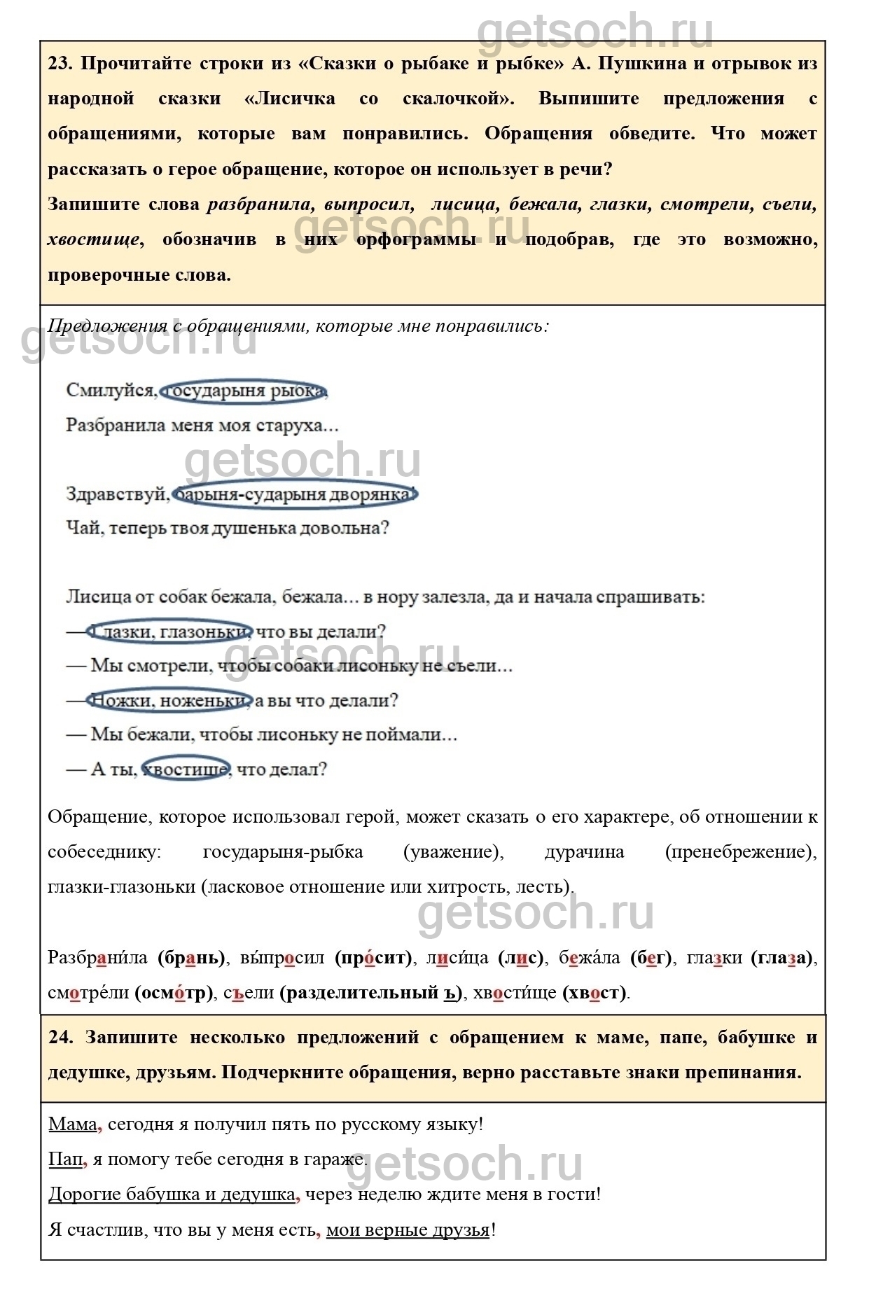 24. Запишите несколько предложений с обращением к маме, папе, бабушке и дедушке, друзьям. Подчеркните обращения, верно расставьте знаки препинания.