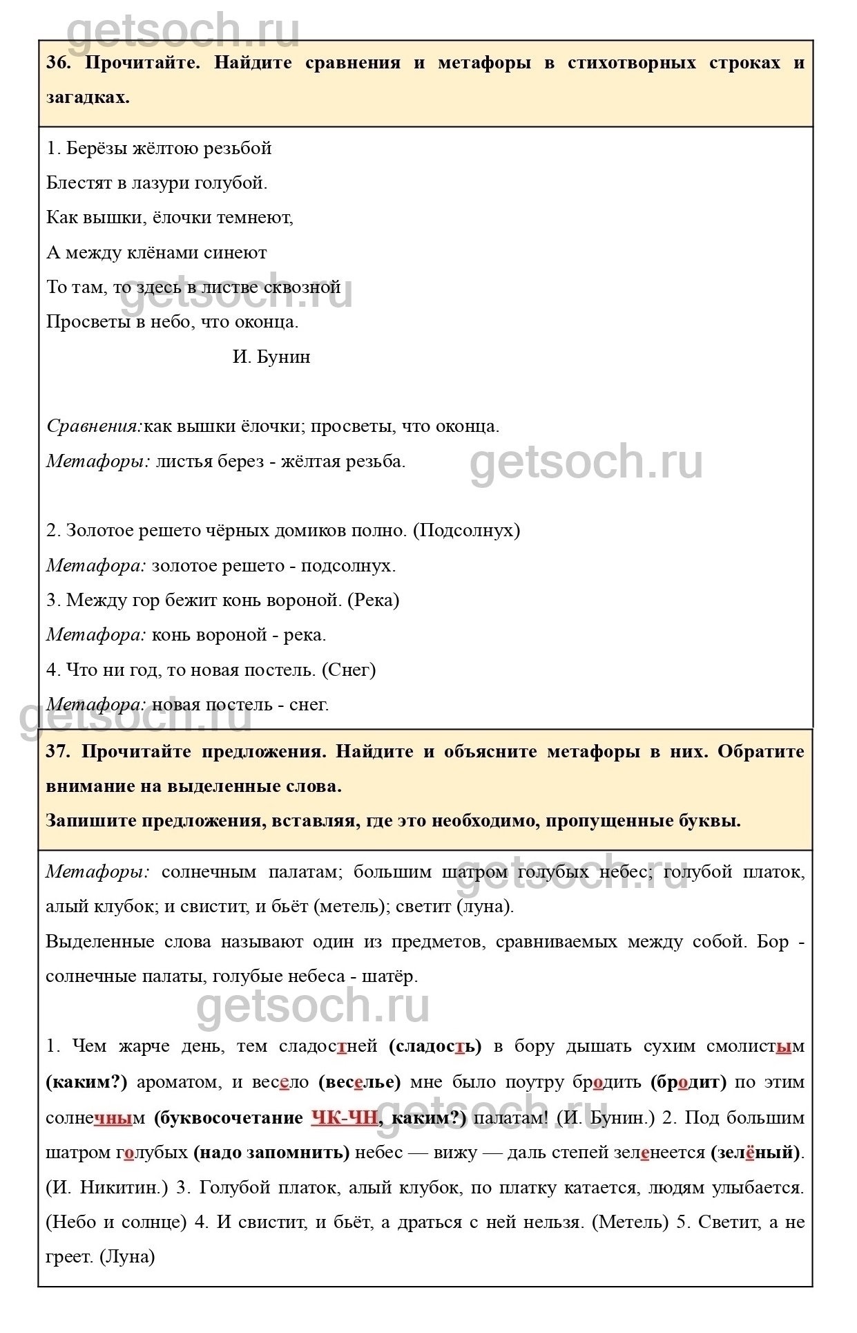36. Прочитайте. Найдите сравнения и метафоры в стихотворных строках и загадках.