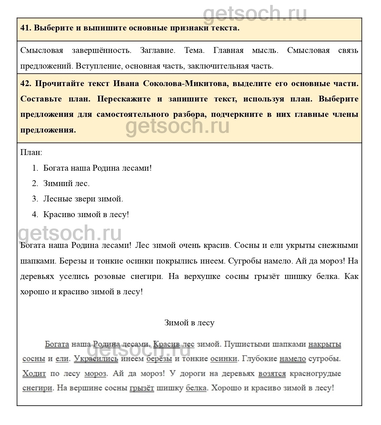 42. Прочитайте текст Ивана Соколова-Микитова, выделите его основные части. Составьте план. Перескажите и запишите текст, используя план. Выберите предложения для самостоятельного разбора, подчеркните в них главные члены предложения.
