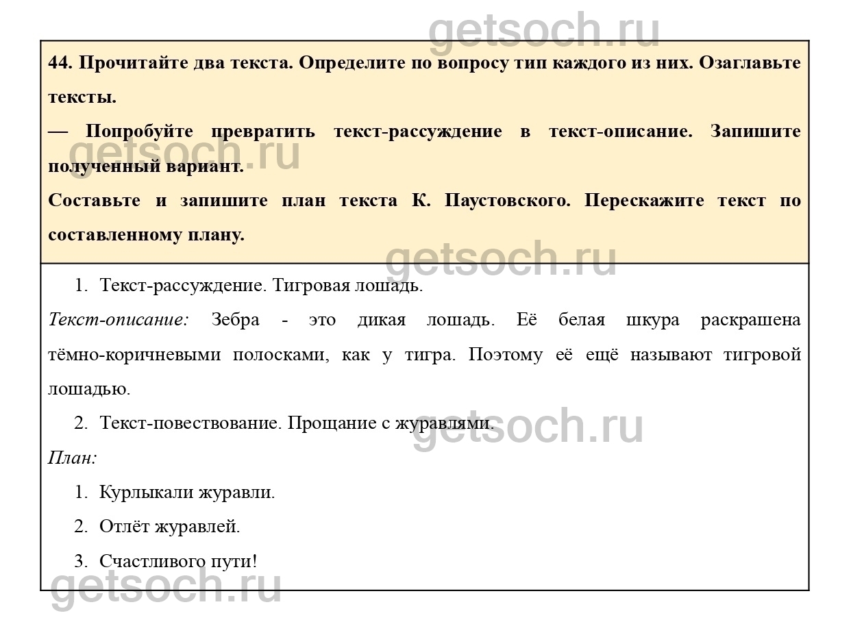 44. Прочитайте два текста. Определите по вопросу тип каждого из них. Озаглавьте тексты.