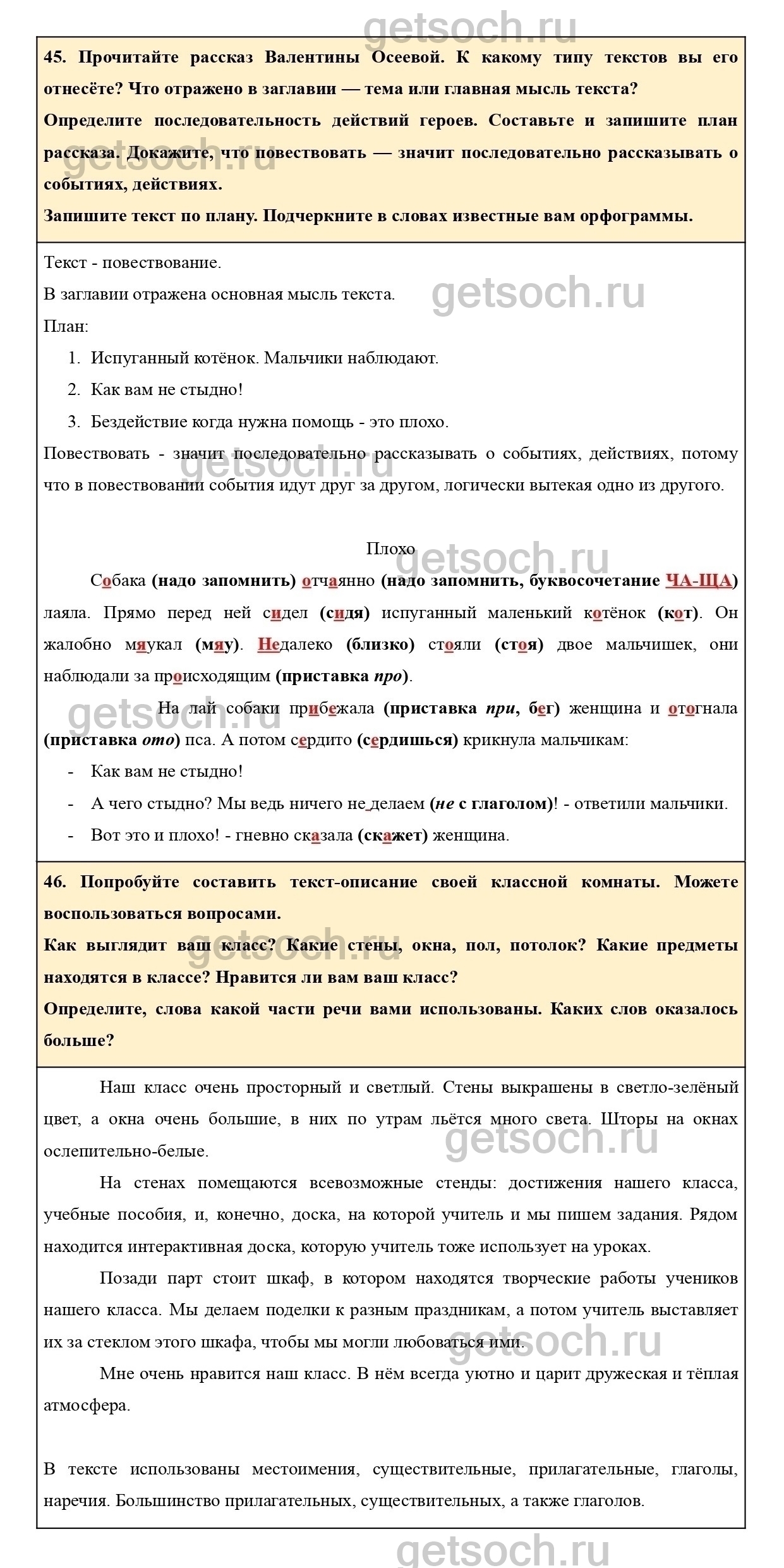 46. Попробуйте составить текст-описание своей классной комнаты. Можете воспользоваться вопросами.