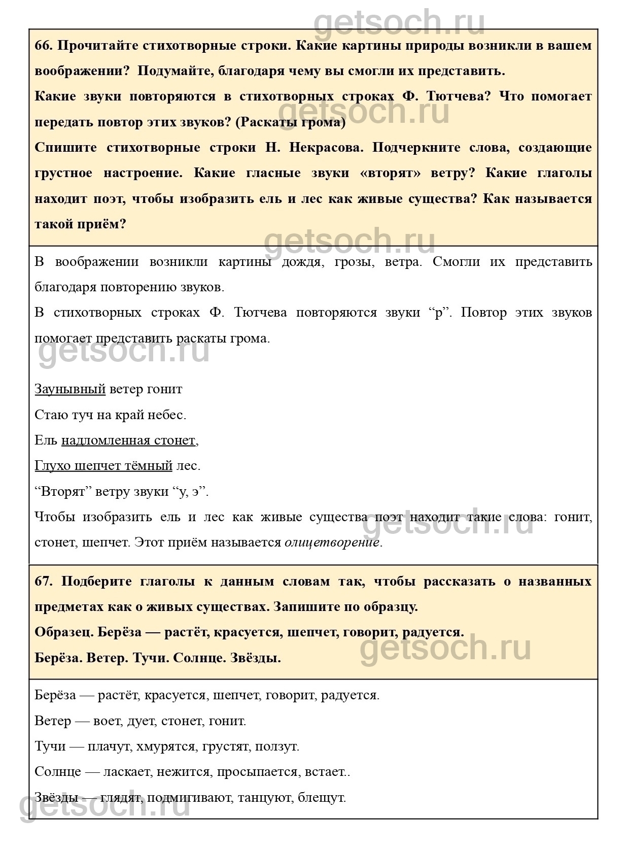 66. Прочитайте стихотворные строки. Какие картины природы возникли в вашем воображении? Подумайте, благодаря чему вы смогли их представить.