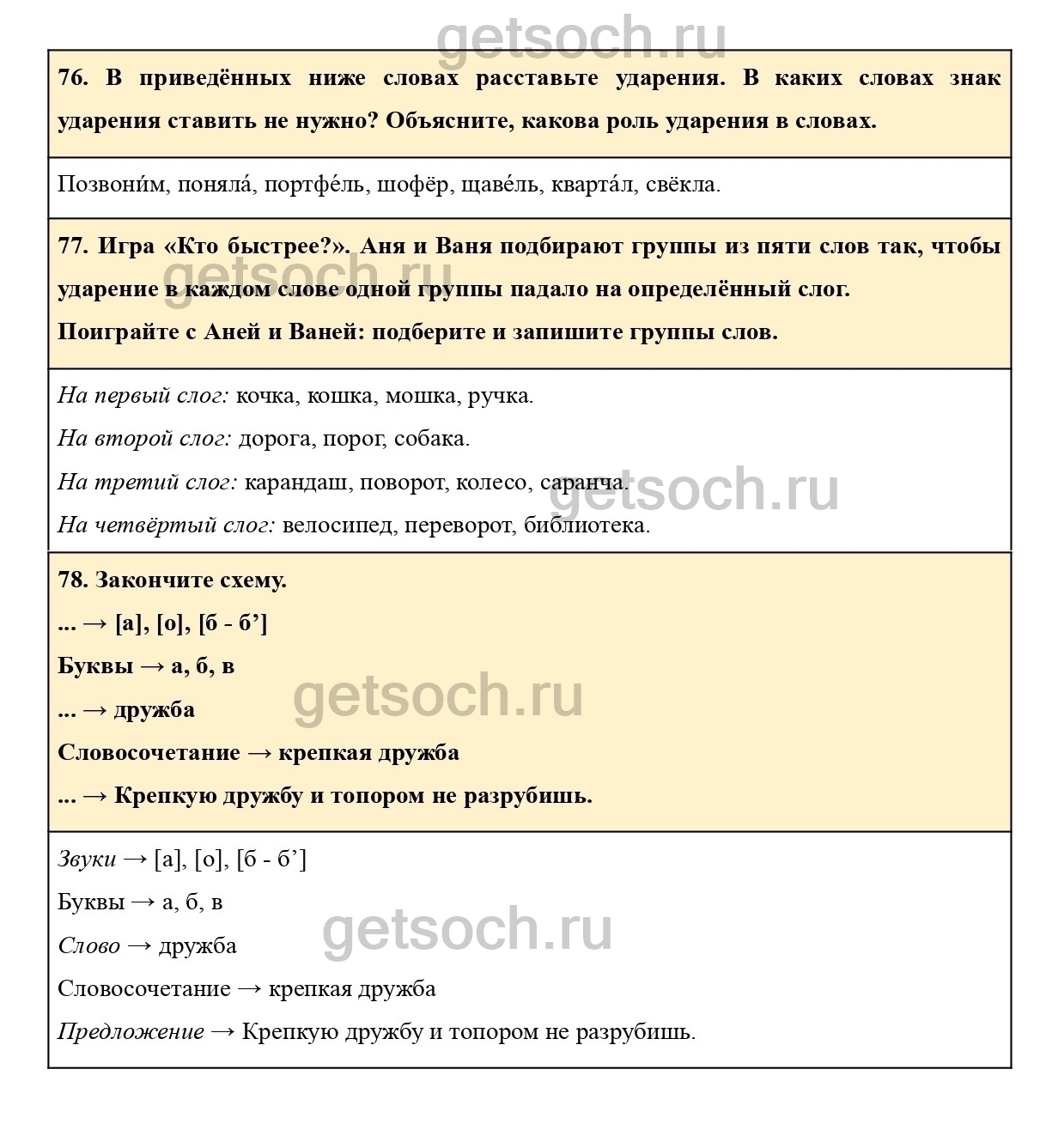 77. Игра «Кто быстрее?». Аня и Ваня подбирают группы из пяти слов так, чтобы ударение в каждом слове одной группы падало на определённый слог.