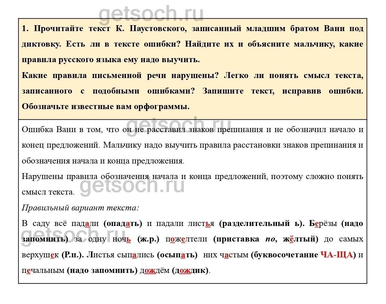 1. Прочитайте текст К. Паустовского, записанный младшим братом Вани под диктовку. Есть ли в тексте ошибки? Найдите их и объясните мальчику, какие правила русского языка ему надо выучить.