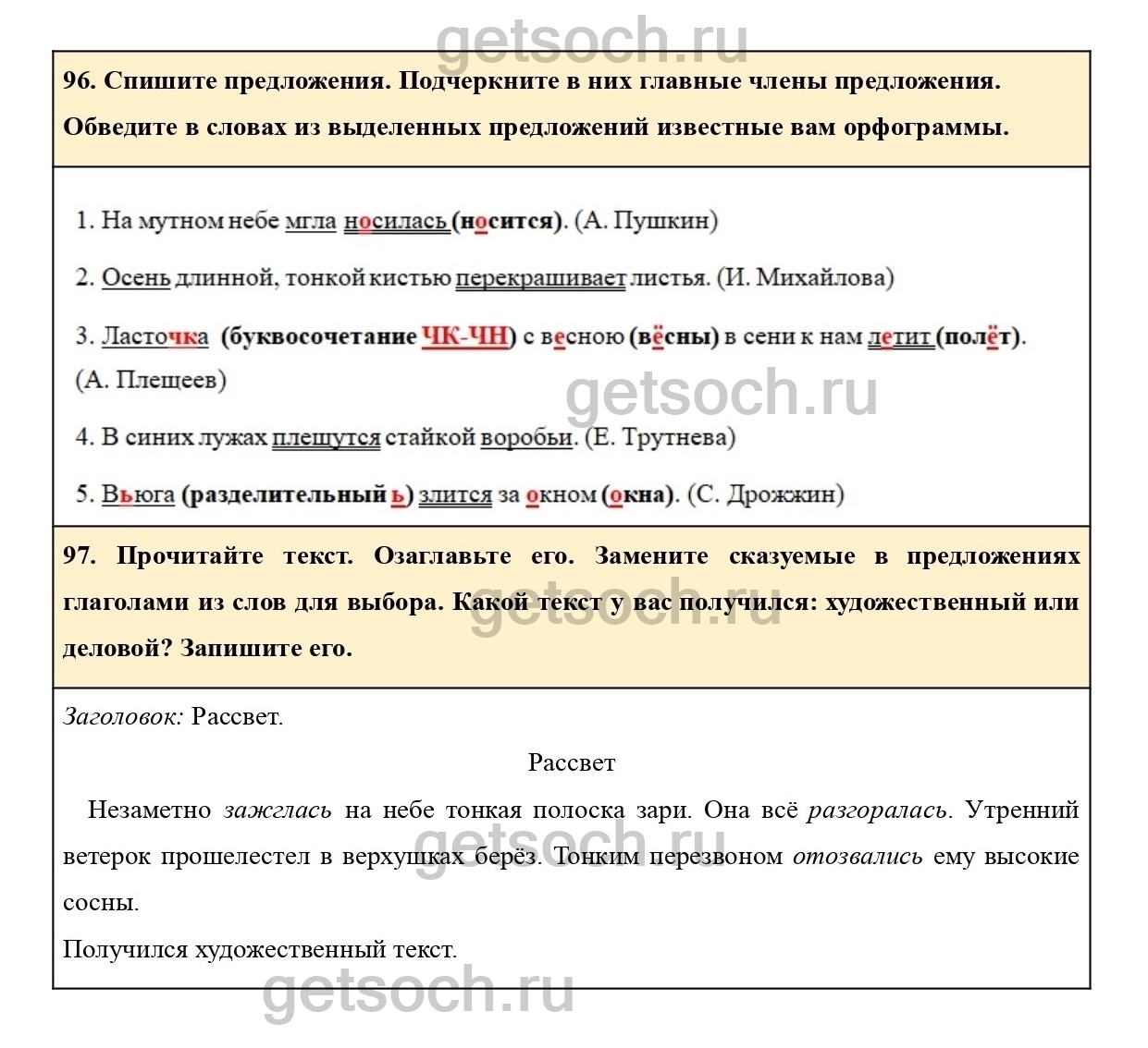 96. Спишите предложения. Подчеркните в них главные члены предложения.