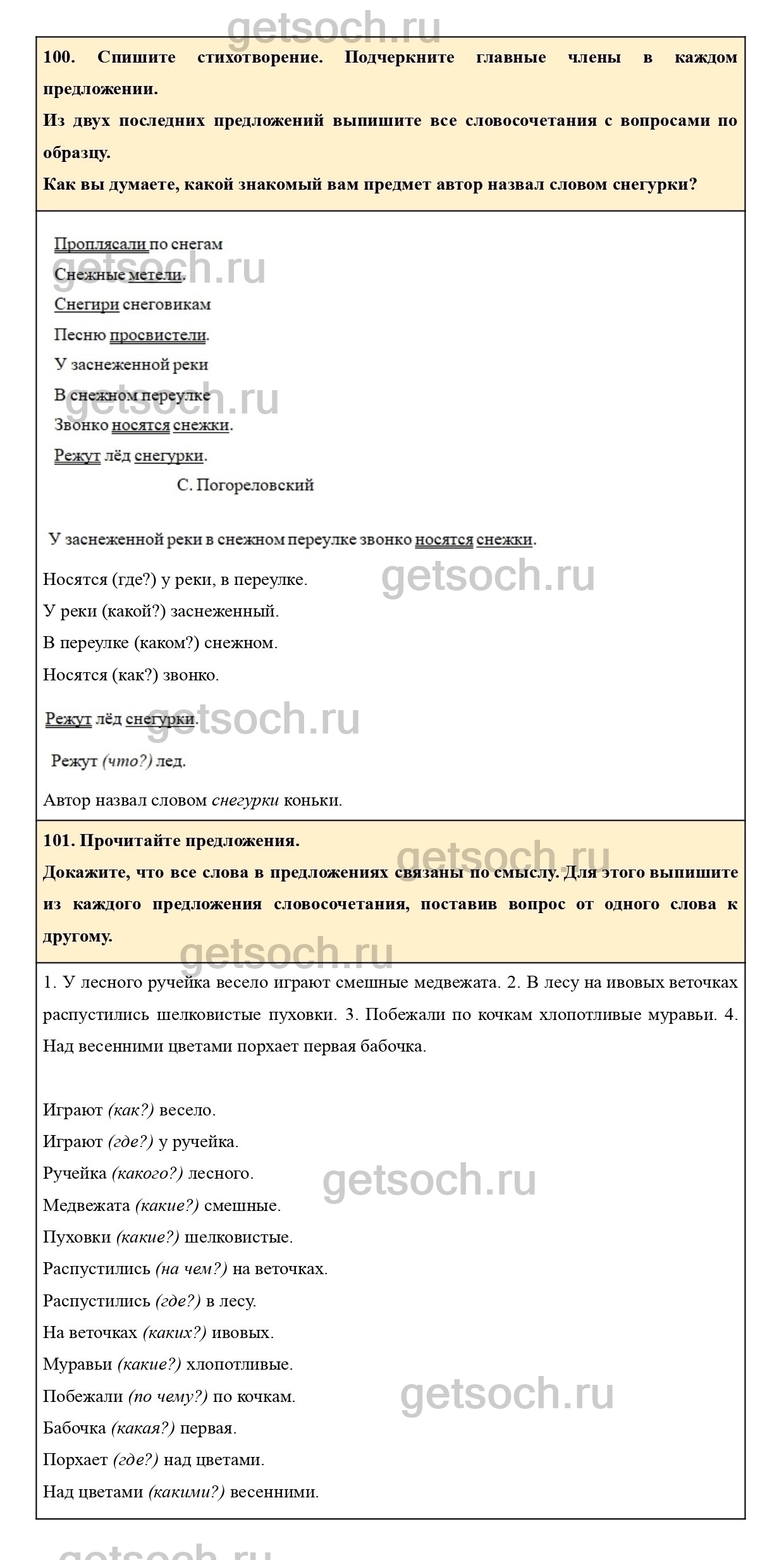 100. Спишите стихотворение. Подчеркните главные члены в каждом предложении.