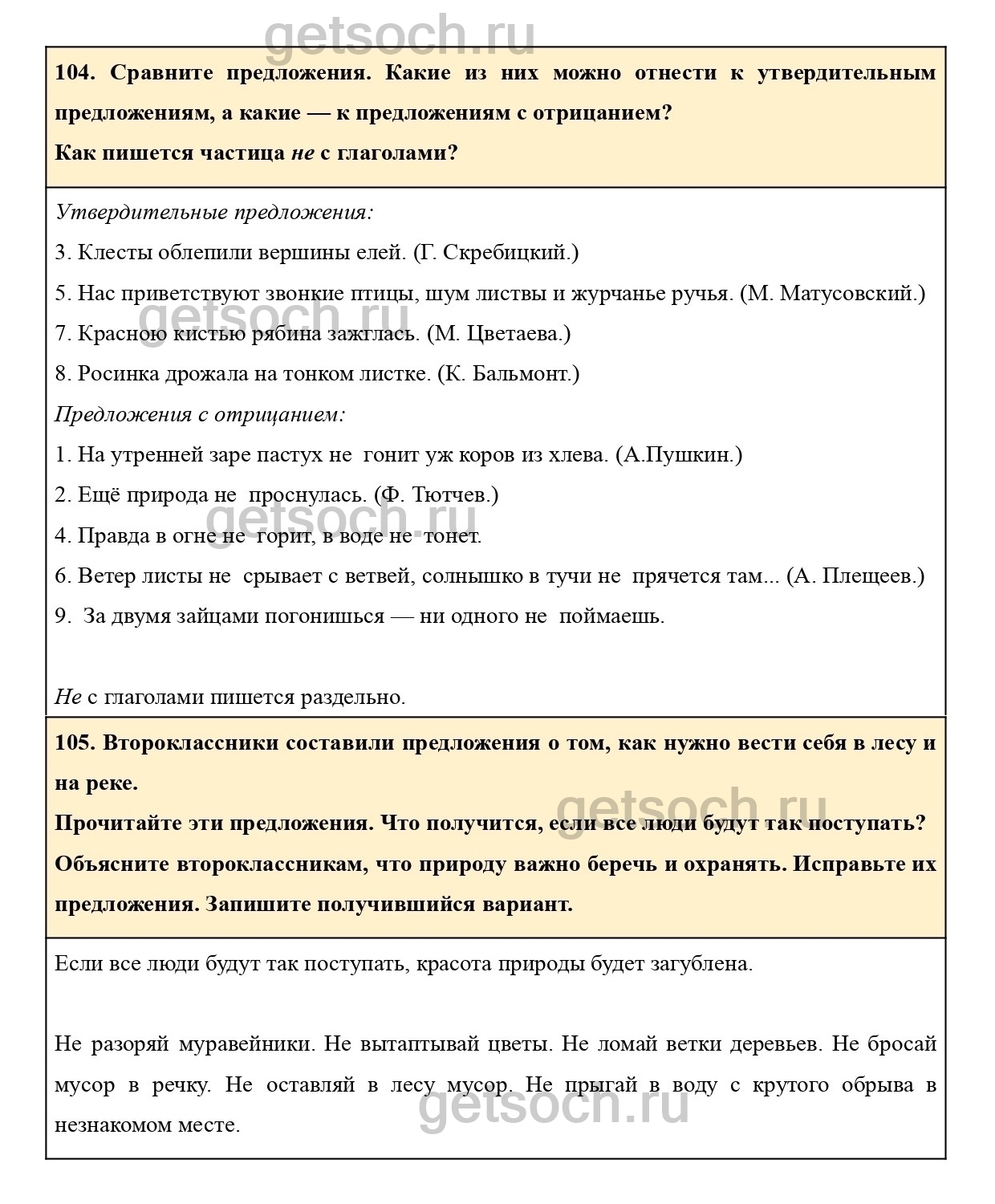 104. Сравните предложения. Какие из них можно отнести к утвердительным предложениям, а какие — к предложениям с отрицанием?