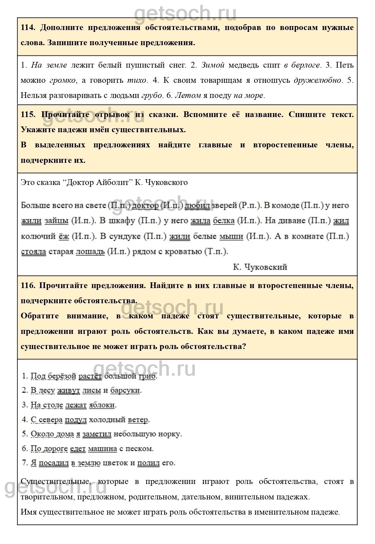 116. Прочитайте предложения. Найдите в них главные и второстепенные члены, подчеркните обстоятельства.