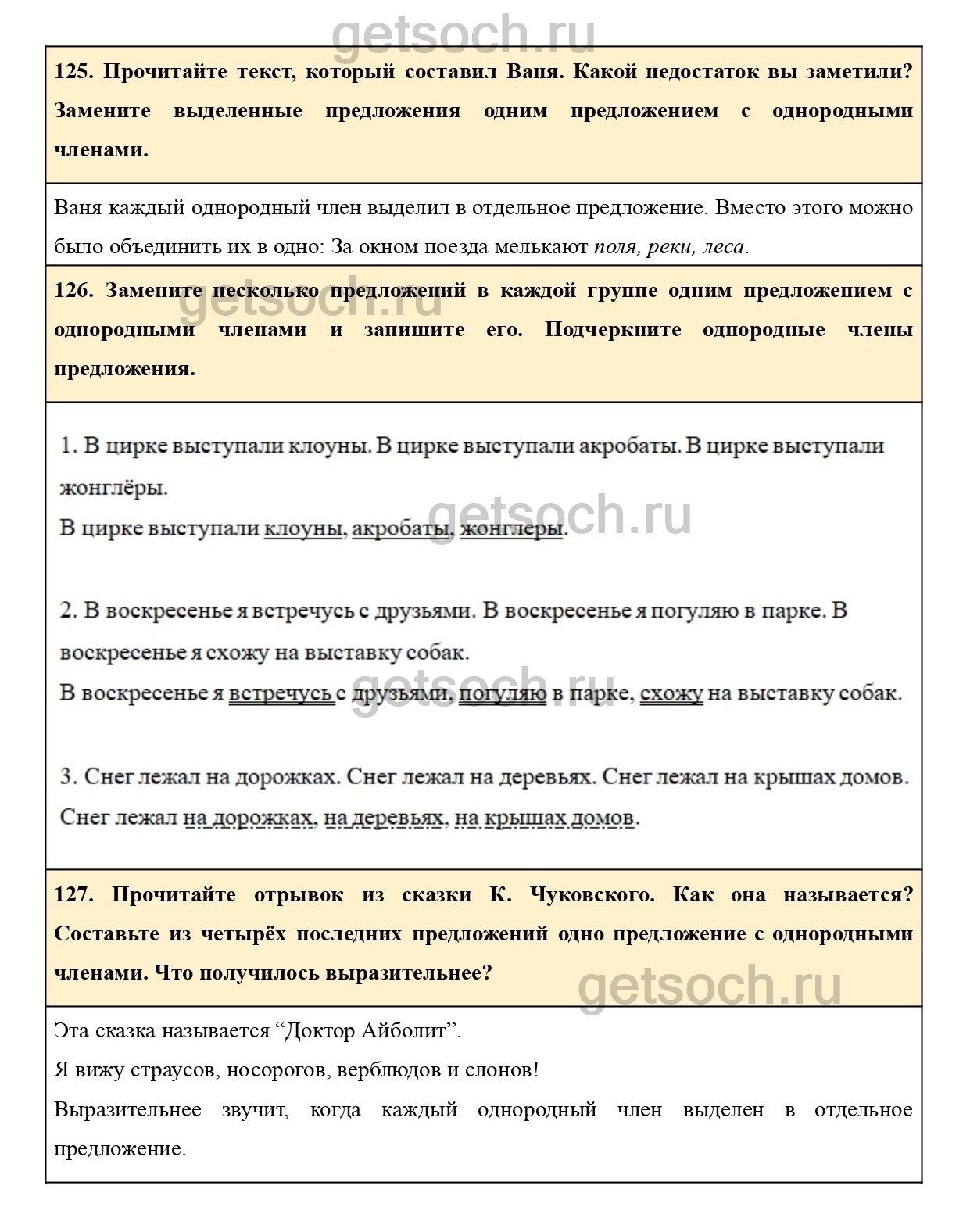 125. Прочитайте текст, который составил Ваня. Какой недостаток вы заметили? Замените выделенные предложения одним предложением с однородными членами.