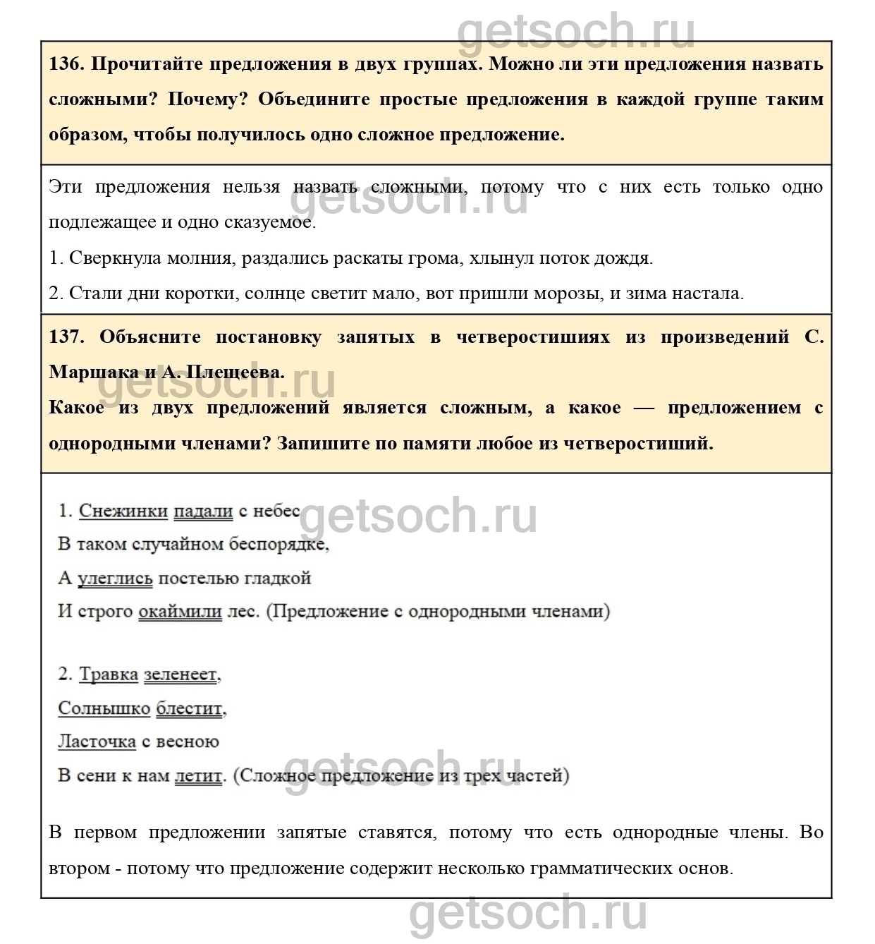 137. Объясните постановку запятых в четверостишиях из произведений С. Маршака и А. Плещеева.