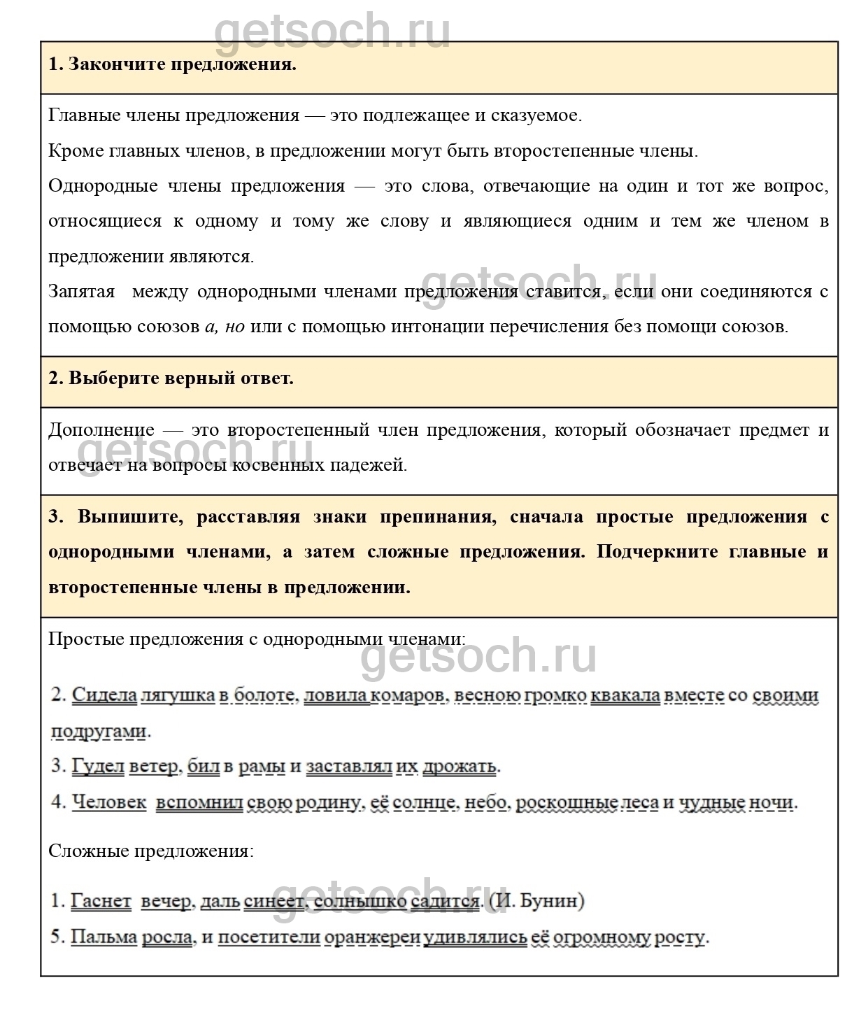 3. Выпишите, расставляя знаки препинания, сначала простые предложения с однородными членами, а затем сложные предложения. Подчеркните главные и второстепенные члены в предложении.
