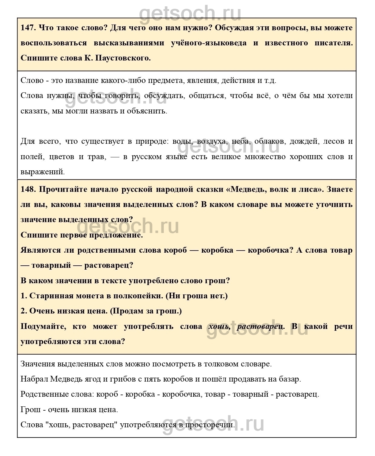 147. Что такое слово? Для чего оно нам нужно? Обсуждая эти вопросы, вы можете воспользоваться высказываниями учёного-языковеда и известного писателя. Спишите слова К. Паустовского.