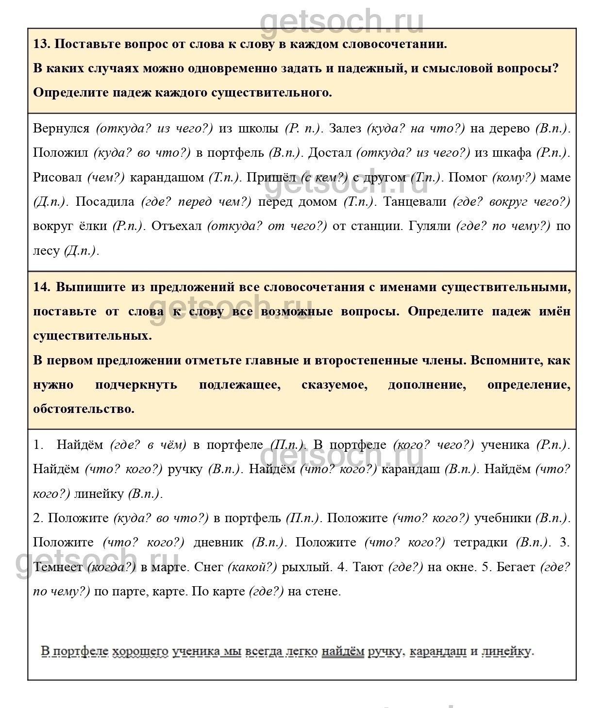14. Выпишите из предложений все словосочетания с именами существительными, поставьте от слова к слову все возможные вопросы. Определите падеж имён существительных.