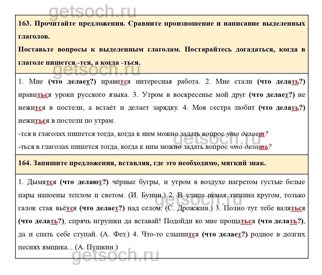 163. Прочитайте предложения. Сравните произношение и написание выделенных глаголов.