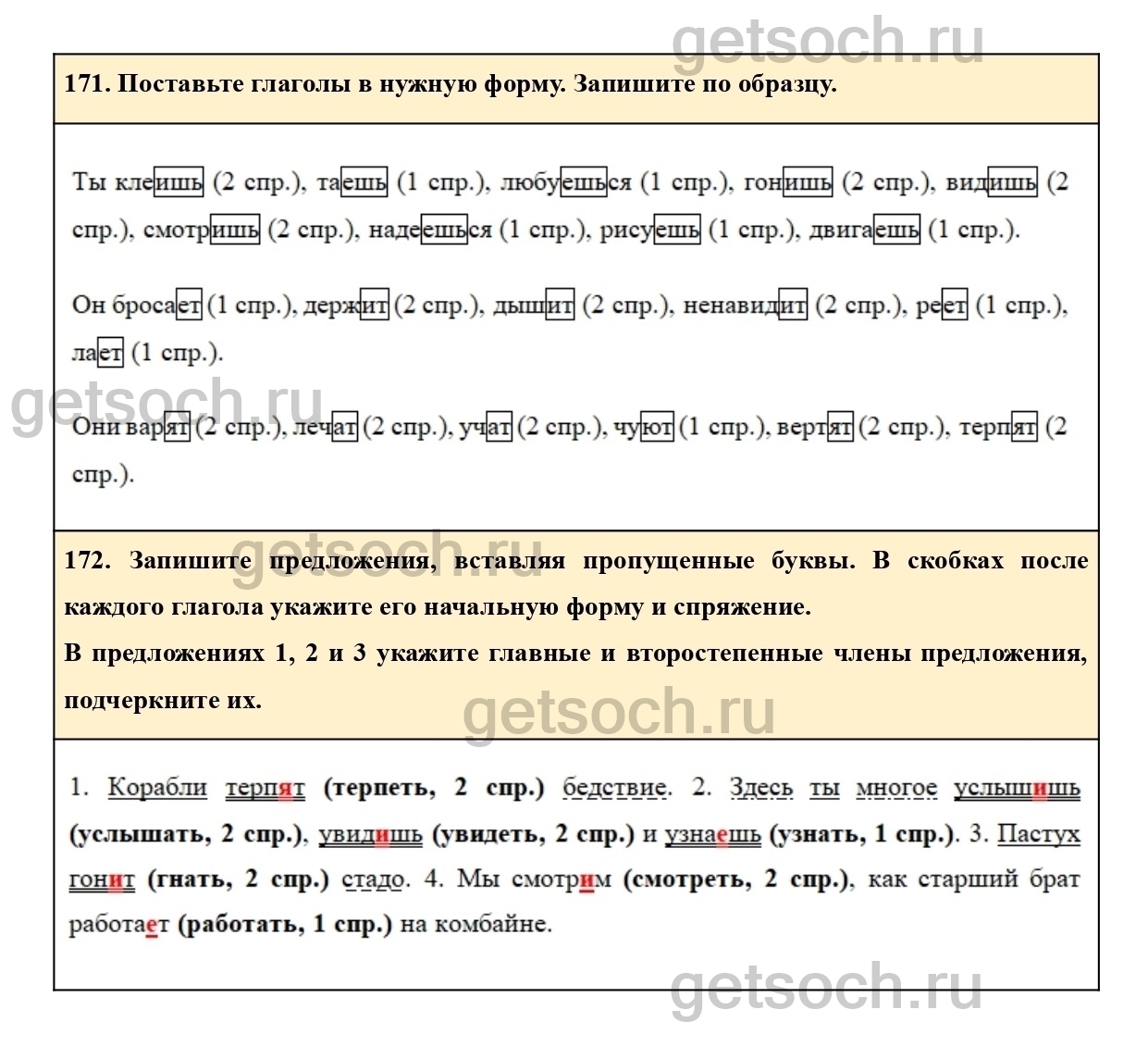 172. Запишите предложения, вставляя пропущенные буквы. В скобках после каждого глагола укажите его начальную форму и спряжение.