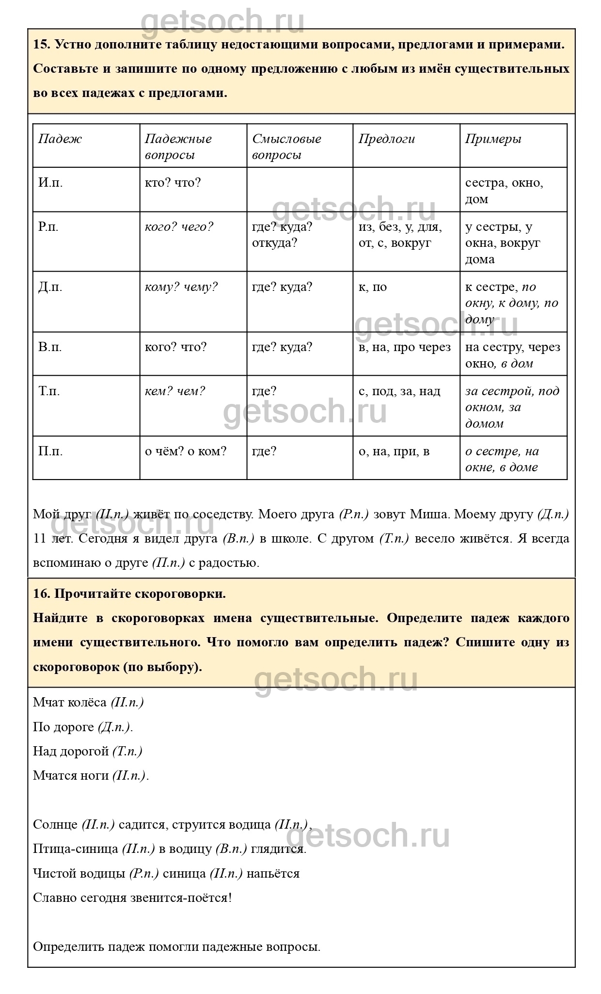 Найдите в скороговорках имена существительные. Определите падеж каждого имени существительного. Что помогло вам определить падеж? Спишите одну из скороговорок (по выбору).