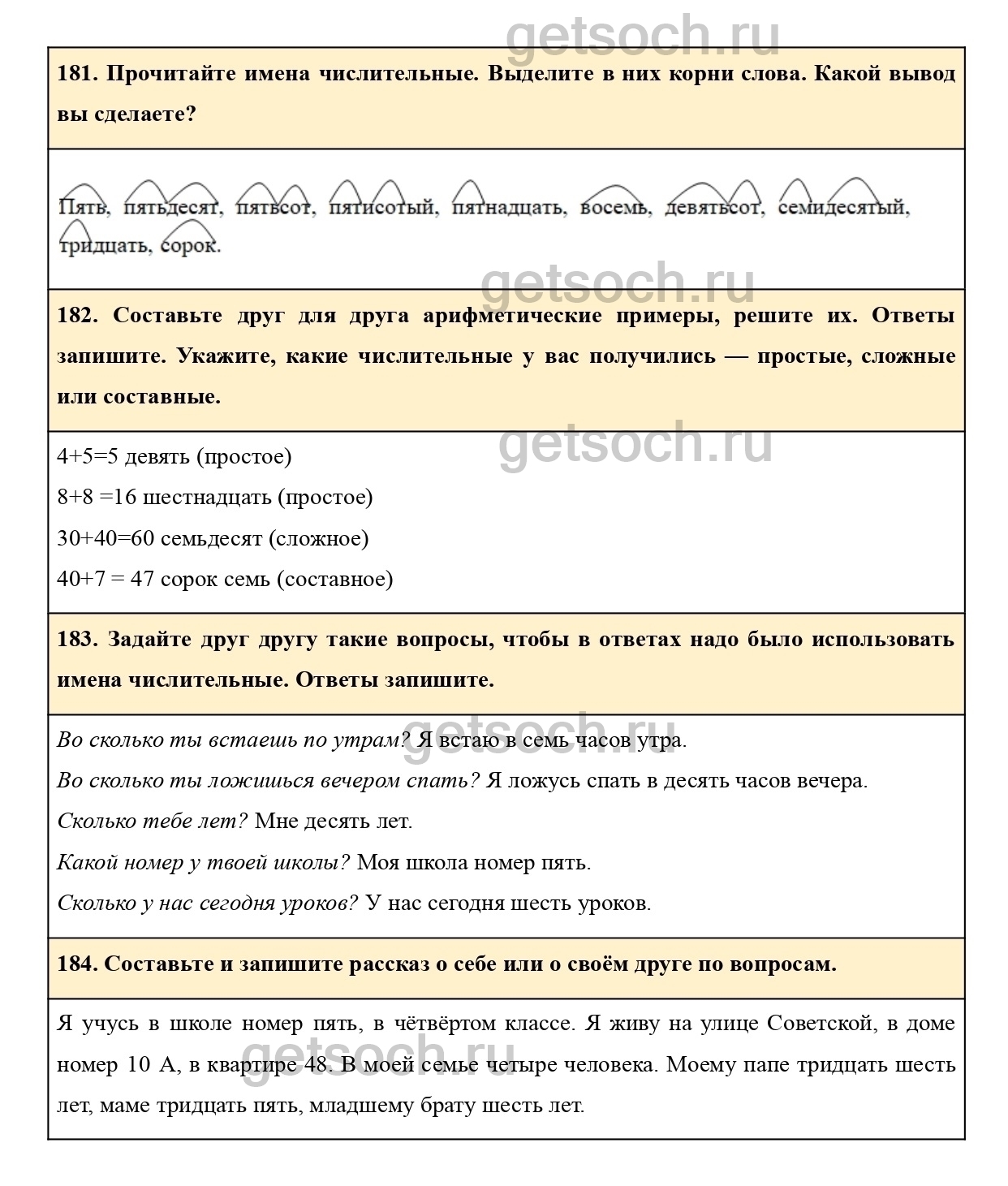 183. Задайте друг другу такие вопросы, чтобы в ответах надо было использовать имена числительные. Ответы запишите.