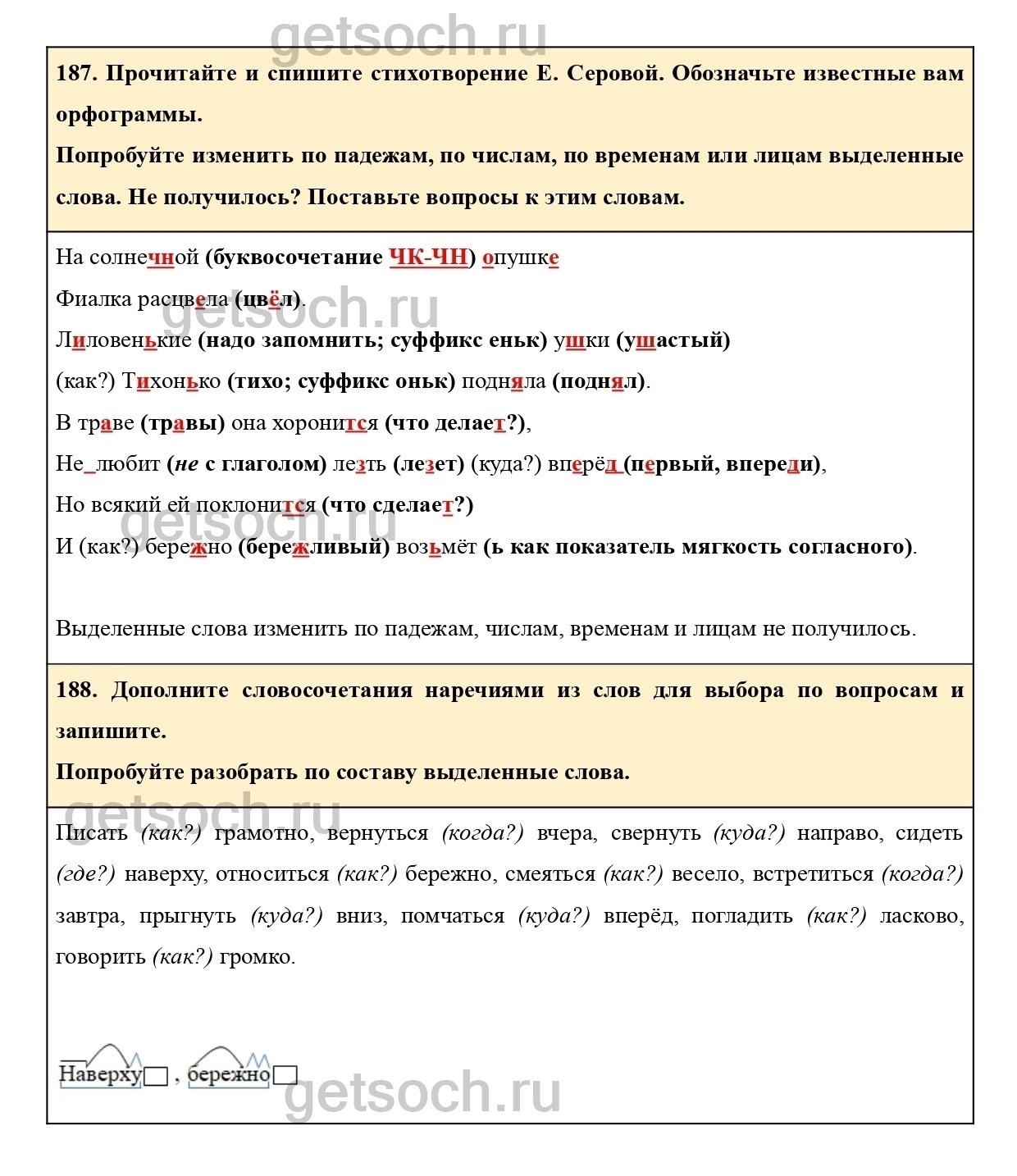 187. Прочитайте и спишите стихотворение Е. Серовой. Обозначьте известные вам орфограммы.