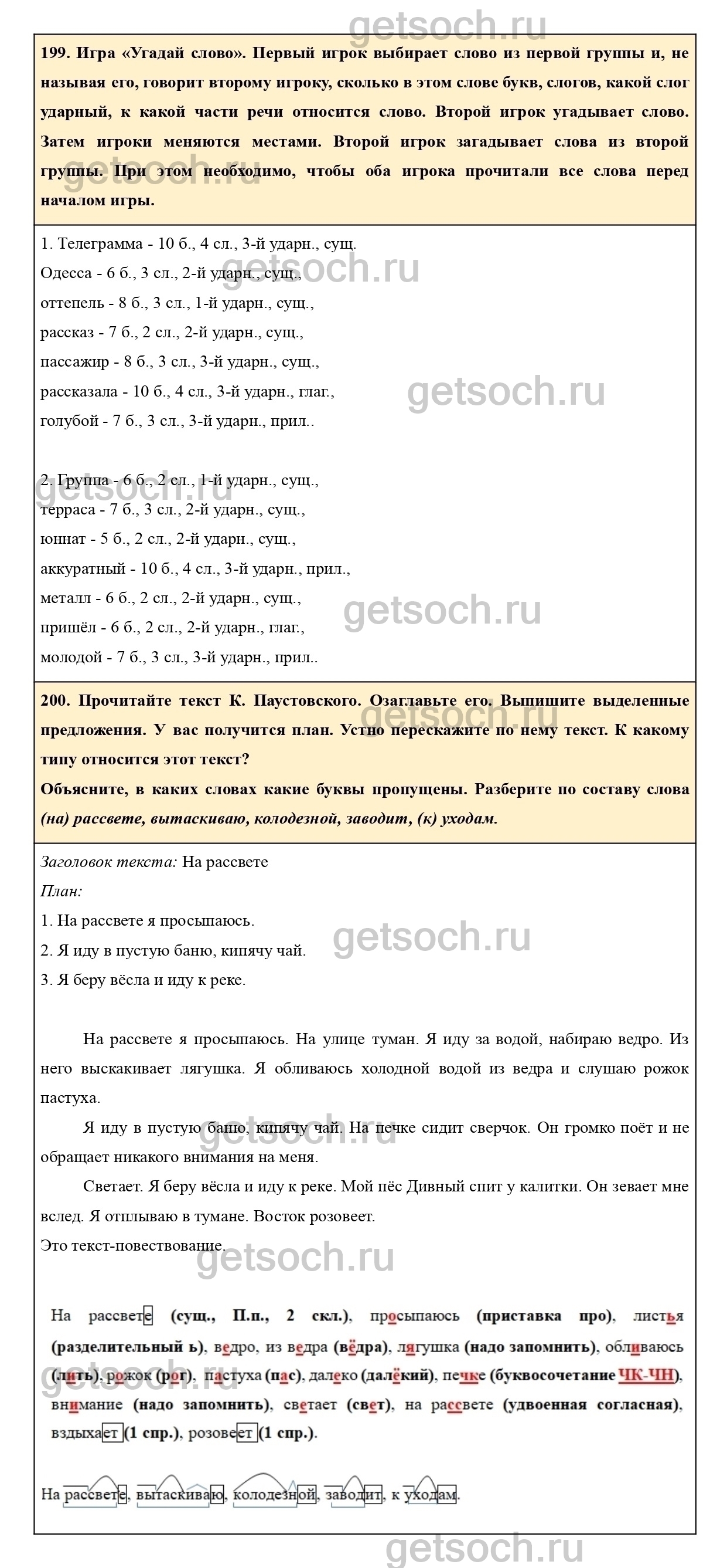 199. Игра «Угадай слово». Первый игрок выбирает слово из первой группы и, не называя его, говорит второму игроку, сколько в этом слове букв, слогов, какой слог ударный, к какой части речи относится слово. Второй игрок угадывает слово. Затем игроки меняются местами. Второй игрок загадывает слова из второй группы. При этом необходимо, чтобы оба игрока прочитали все слова перед началом игры.