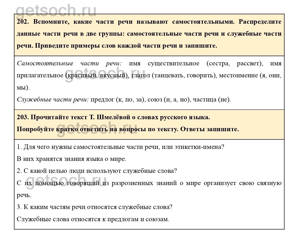 202. Вспомните, какие части речи называют самостоятельными. Распределите данные части речи в две группы: самостоятельные части речи и служебные части речи. Приведите примеры слов каждой части речи и запишите.