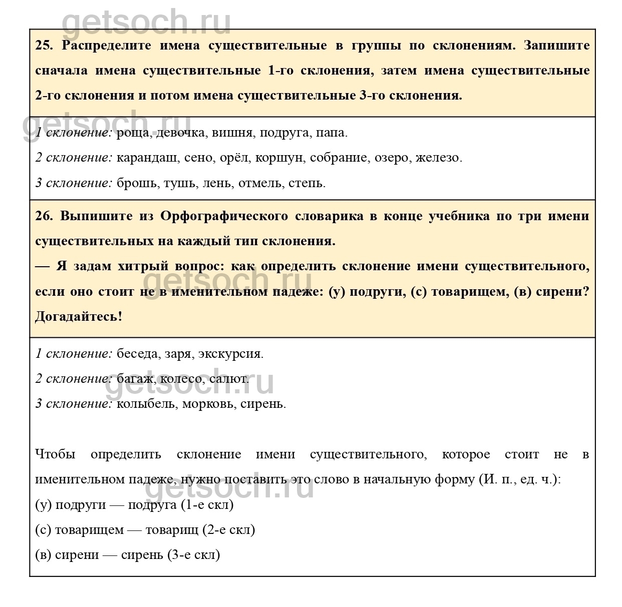 25. Распределите имена существительные в группы по склонениям. Запишите сначала имена существительные 1-го склонения, затем имена существительные 2-го склонения и потом имена существительные 3-го склонения.