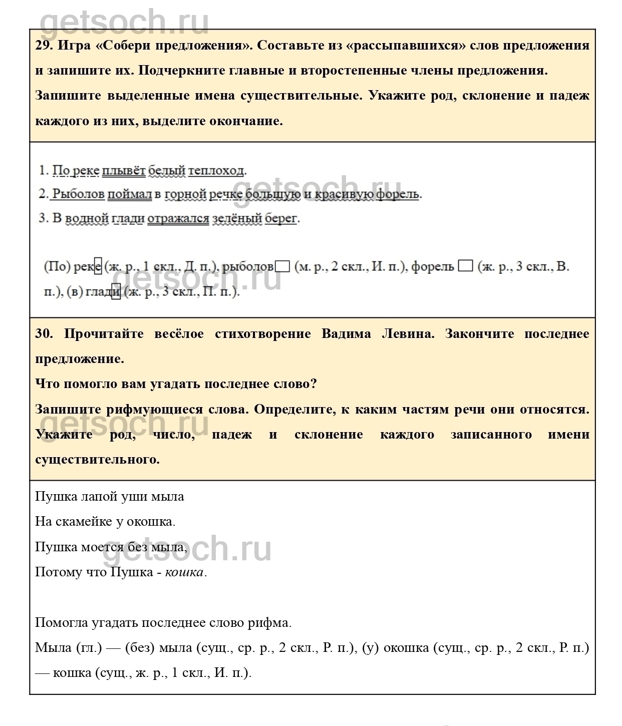 29. Игра «Собери предложения». Составьте из «рассыпавшихся» слов предложения и запишите их. Подчеркните главные и второстепенные члены предложения.