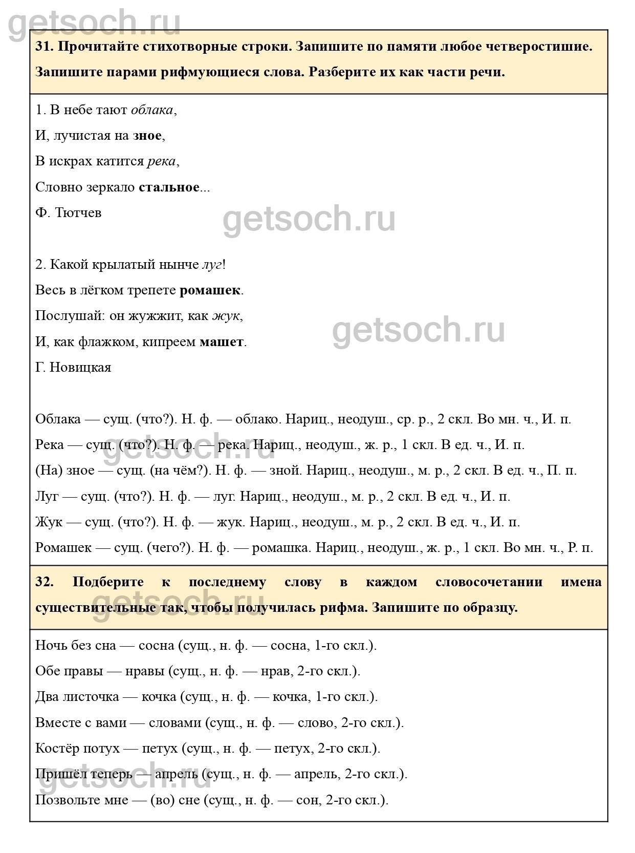 32. Подберите к последнему слову в каждом словосочетании имена существительные так, чтобы получилась рифма. Запишите по образцу.