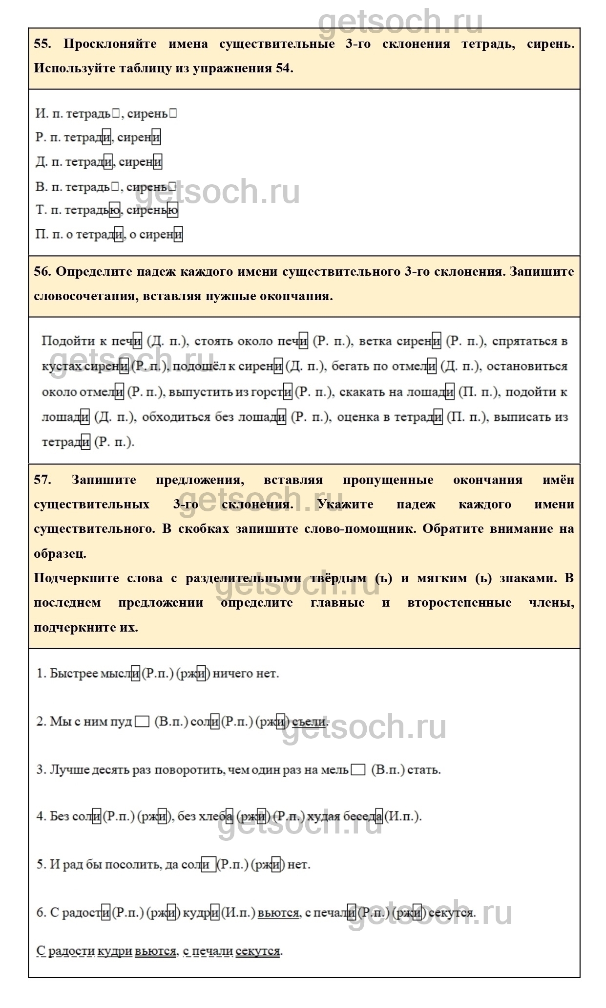 55. Просклоняйте имена существительные 3-го склонения тетрадь, сирень. Используйте таблицу из упражнения 54.