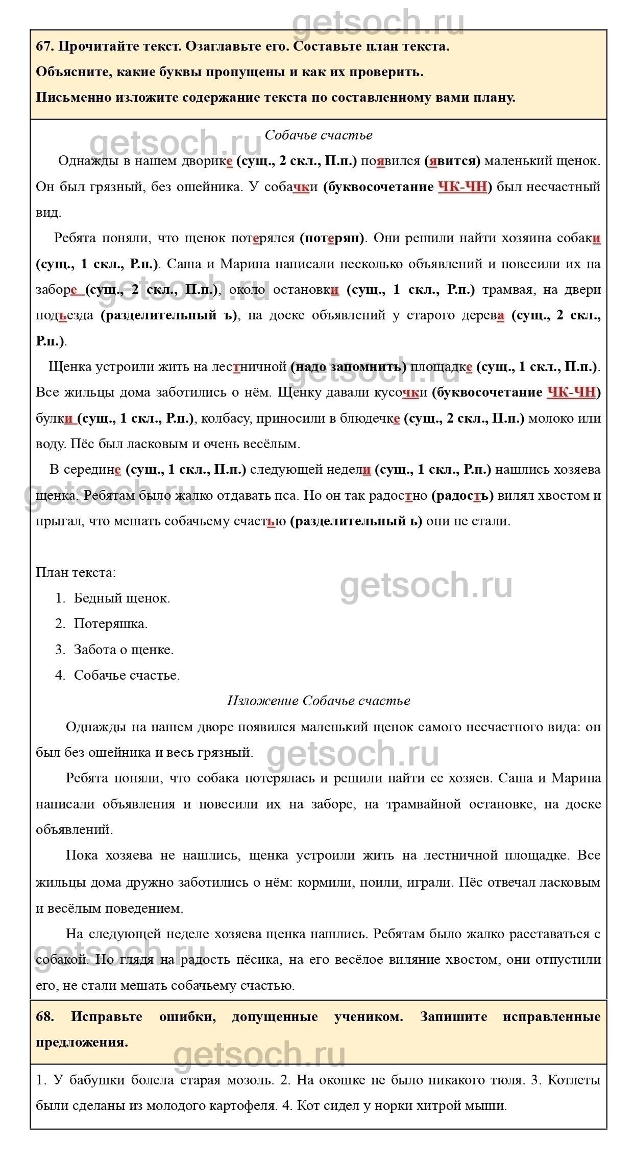 68. Исправьте ошибки, допущенные учеником. Запишите исправленные предложения.