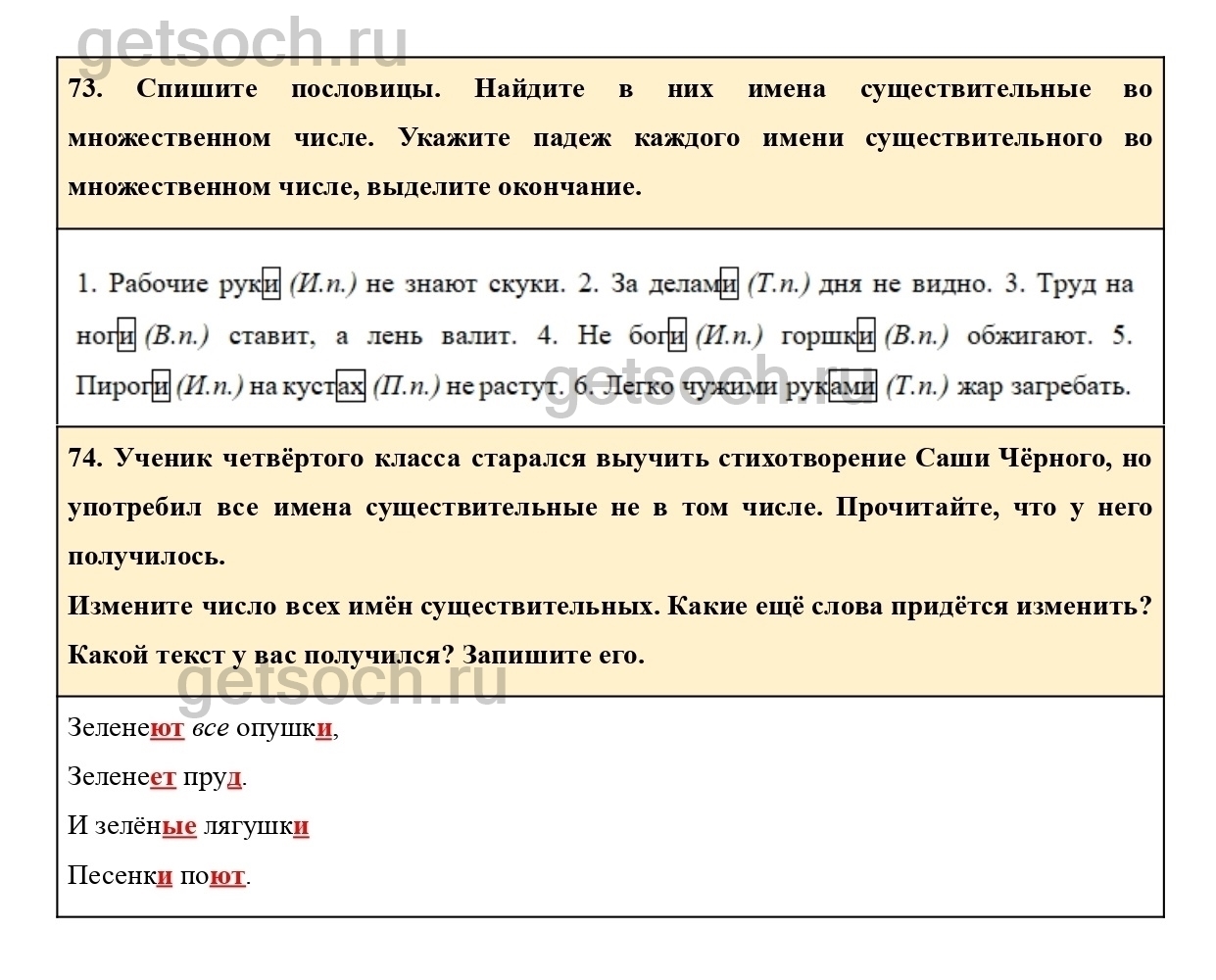74. Ученик четвёртого класса старался выучить стихотворение Саши Чёрного, но употребил все имена существительные не в том числе. Прочитайте, что у него получилось.