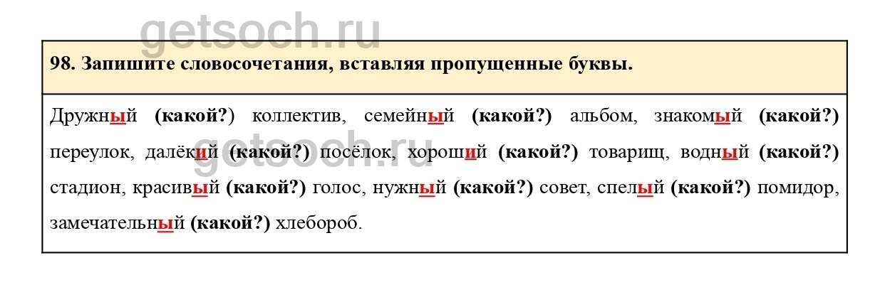 98. Запишите словосочетания, вставляя пропущенные буквы.