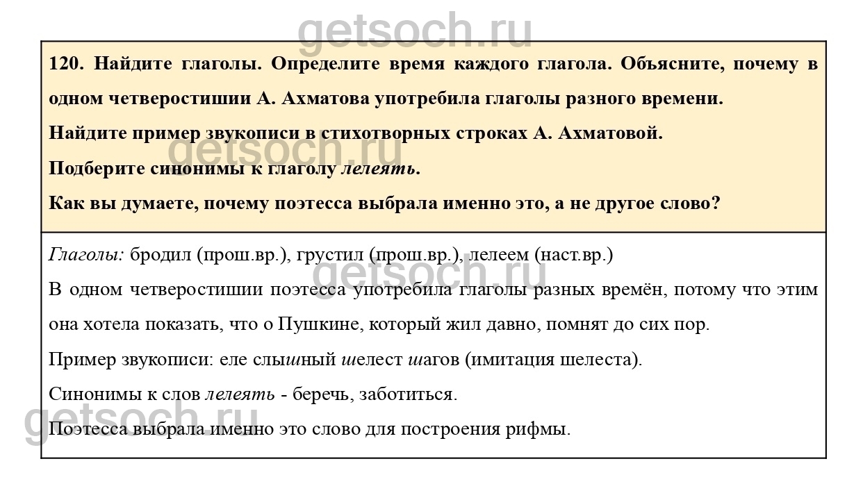 120. Найдите глаголы. Определите время каждого глагола. Объясните, почему в одном четверостишии А. Ахматова употребила глаголы разного времени.