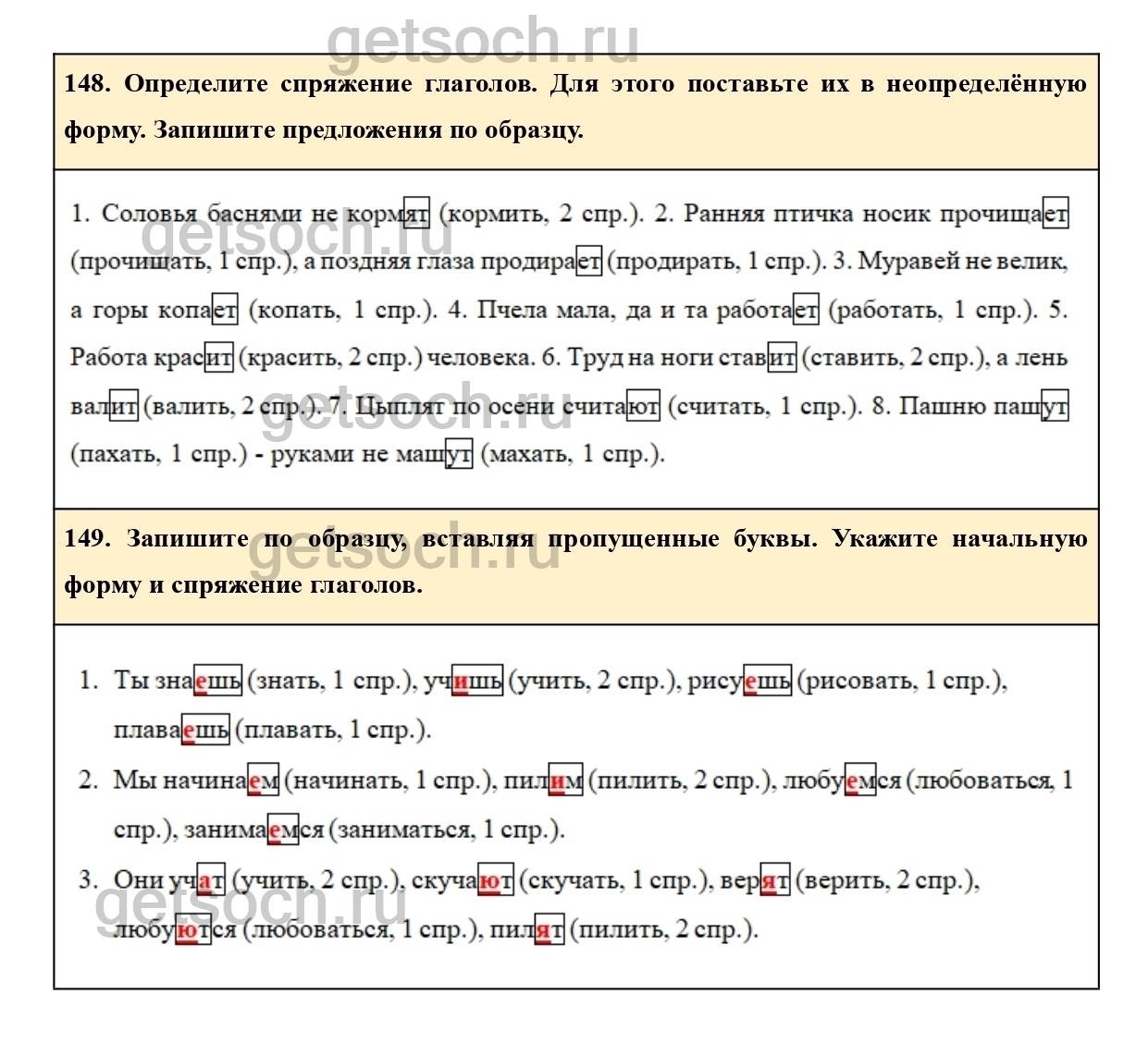 148. Определите спряжение глаголов. Для этого поставьте их в неопределённую форму. Запишите предложения по образцу.