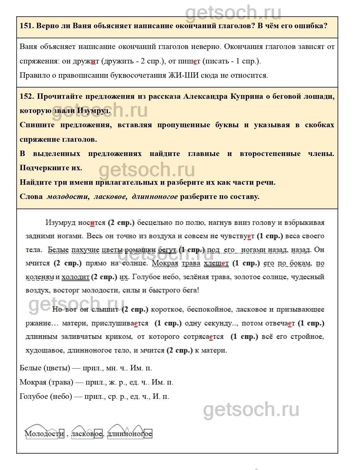 152. Прочитайте предложения из рассказа Александра Куприна о беговой лошади, которую звали Изумруд.
