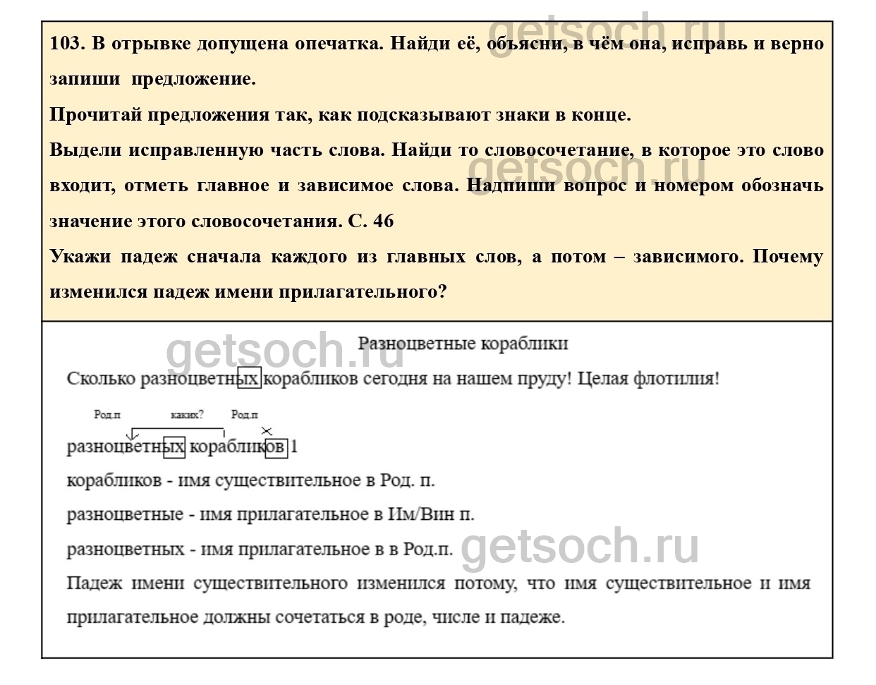 Рассмотрим ответы на Упражнение 103 из учебника по русскому языку для 4 класса Соловейчика