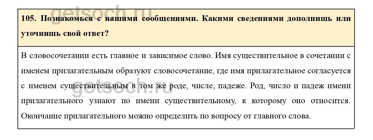 Рассмотрим ответы на Упражнение 105 из учебника по русскому языку для 4 класса Соловейчика