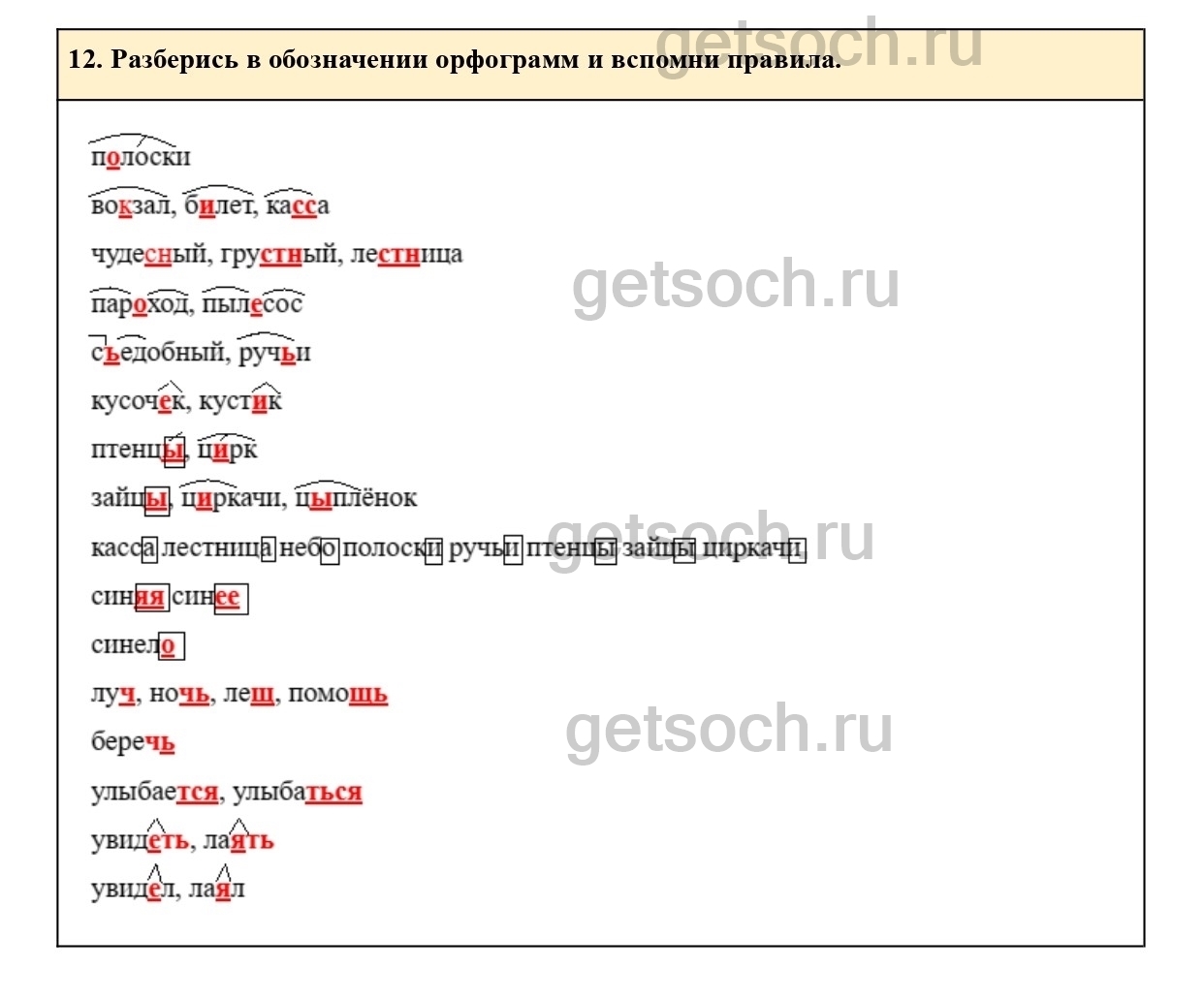 12. Разберись в обозначении орфограмм и вспомни правила.